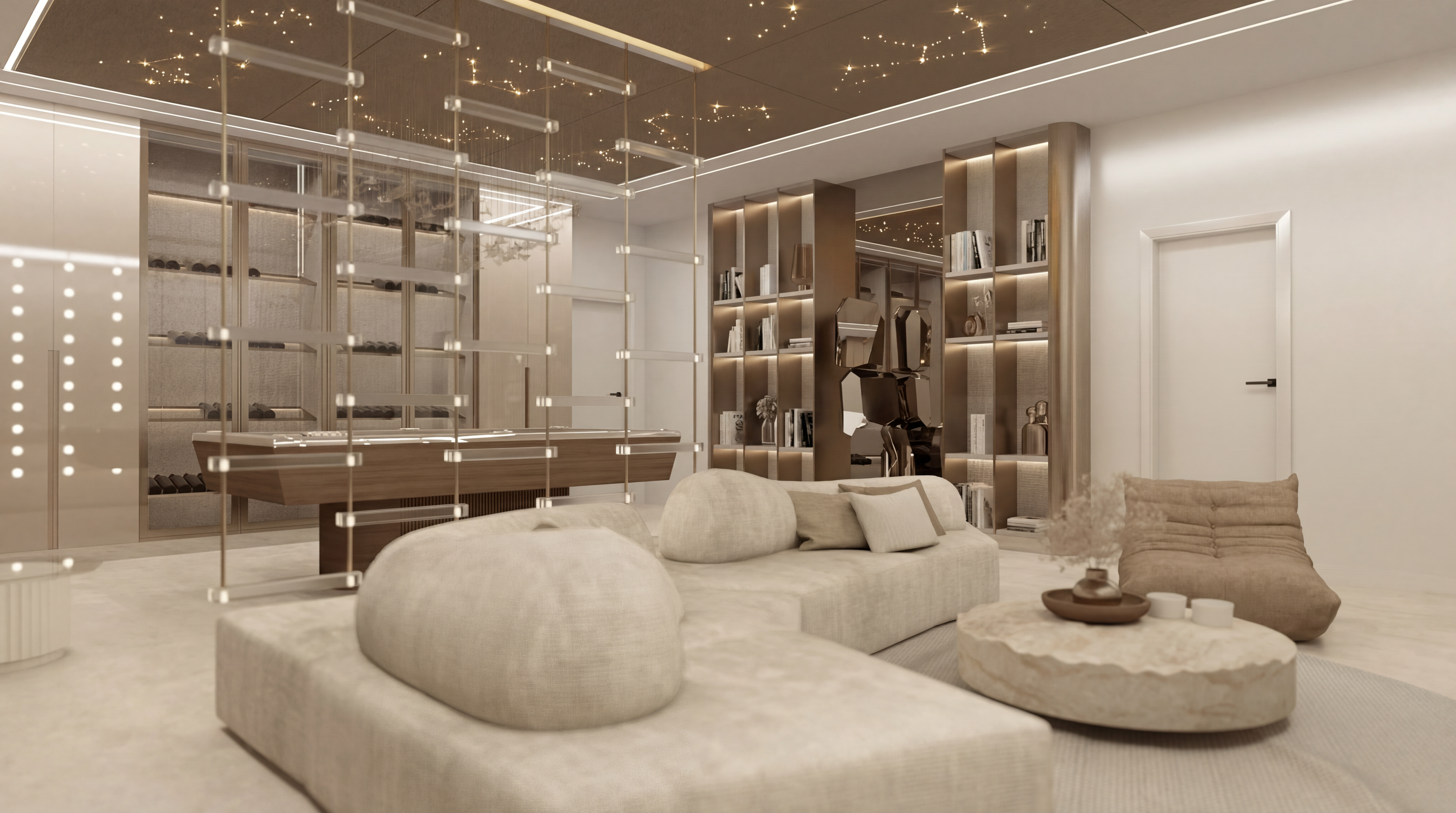make windows black with walk out to pool make sofa and pillows white and tan remove orange throw blanet and magazines on floor
