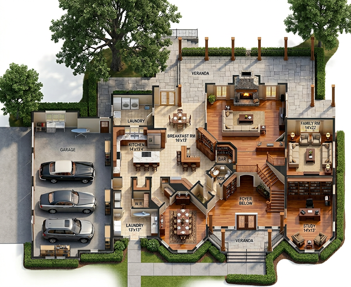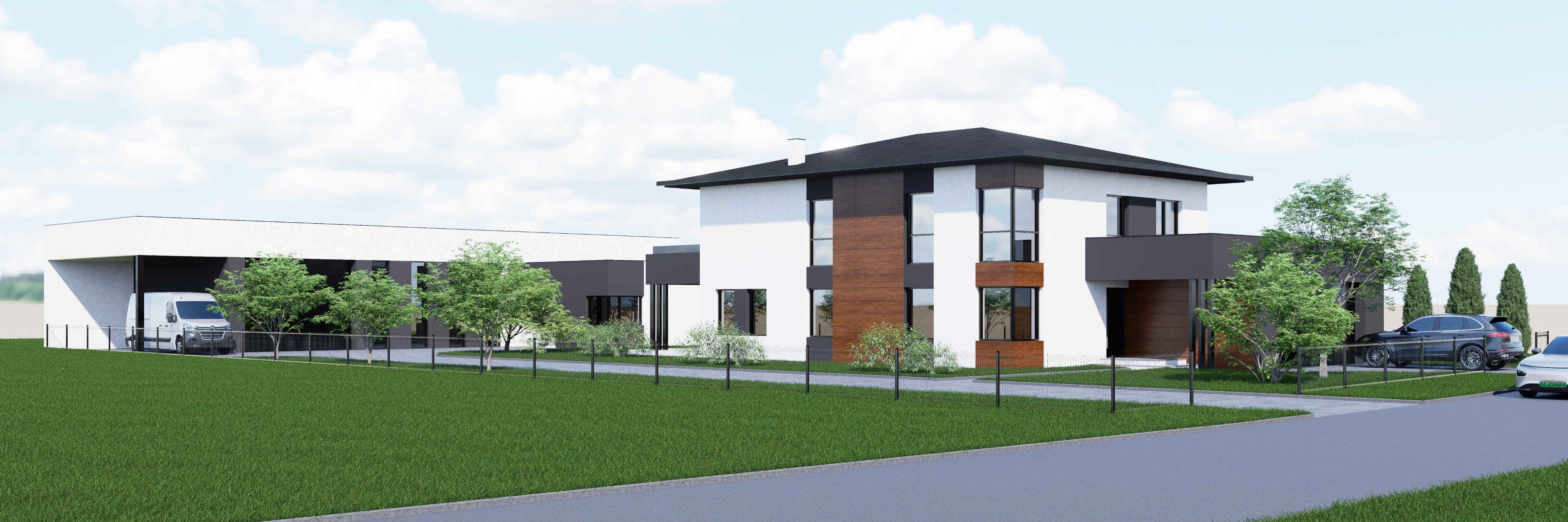 render a modern house put yourself in the role of a master graphic architect who wants to present the best possible visualization of their project