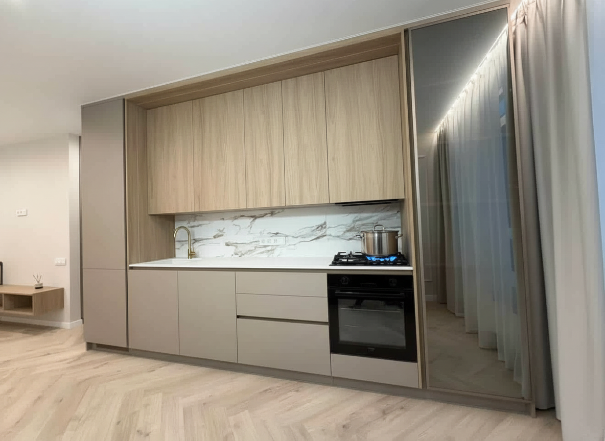 replace the entire background and floor completely do not keep the original space create a luxury gallery showroom with smooth ivory plaster walls light microcement or limestone floor clean architectural corners wide open space the orex table stays exactly the same in shape color and proportions black solid wood top with a gold paper wrapped sculptural base lighting soft gallery spotlights from above focused only on the table subtle glow on the gold texture no decor no people no text ultra realistic high end