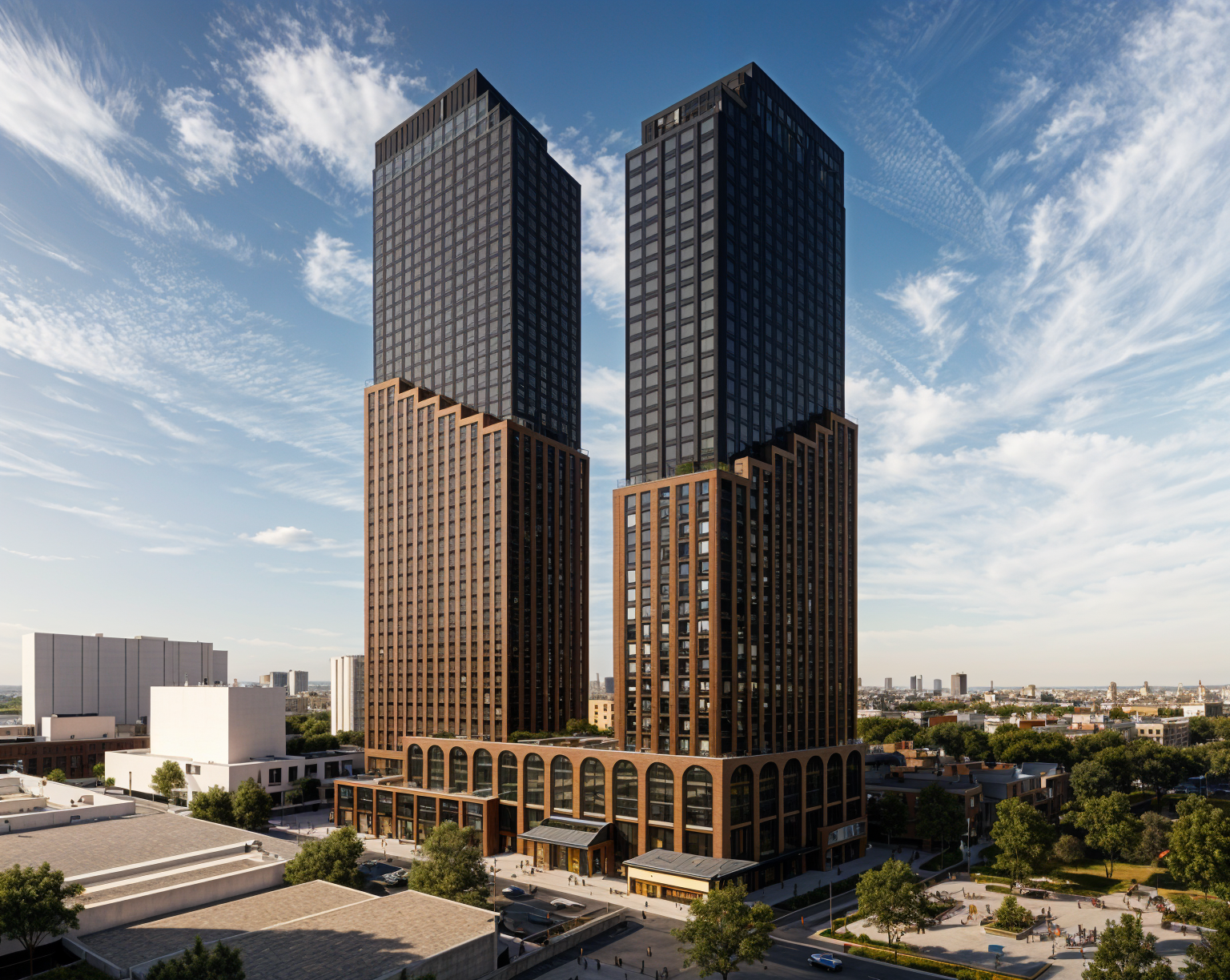 create a marketing style rendering with real materials not as dark pre evening environment add trees on the cascading levels