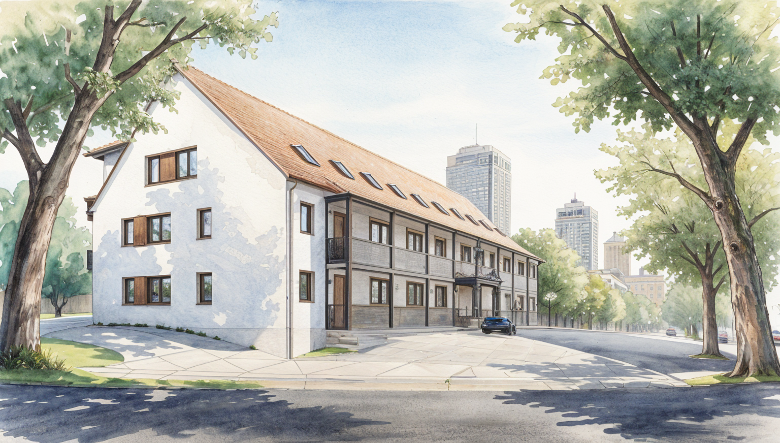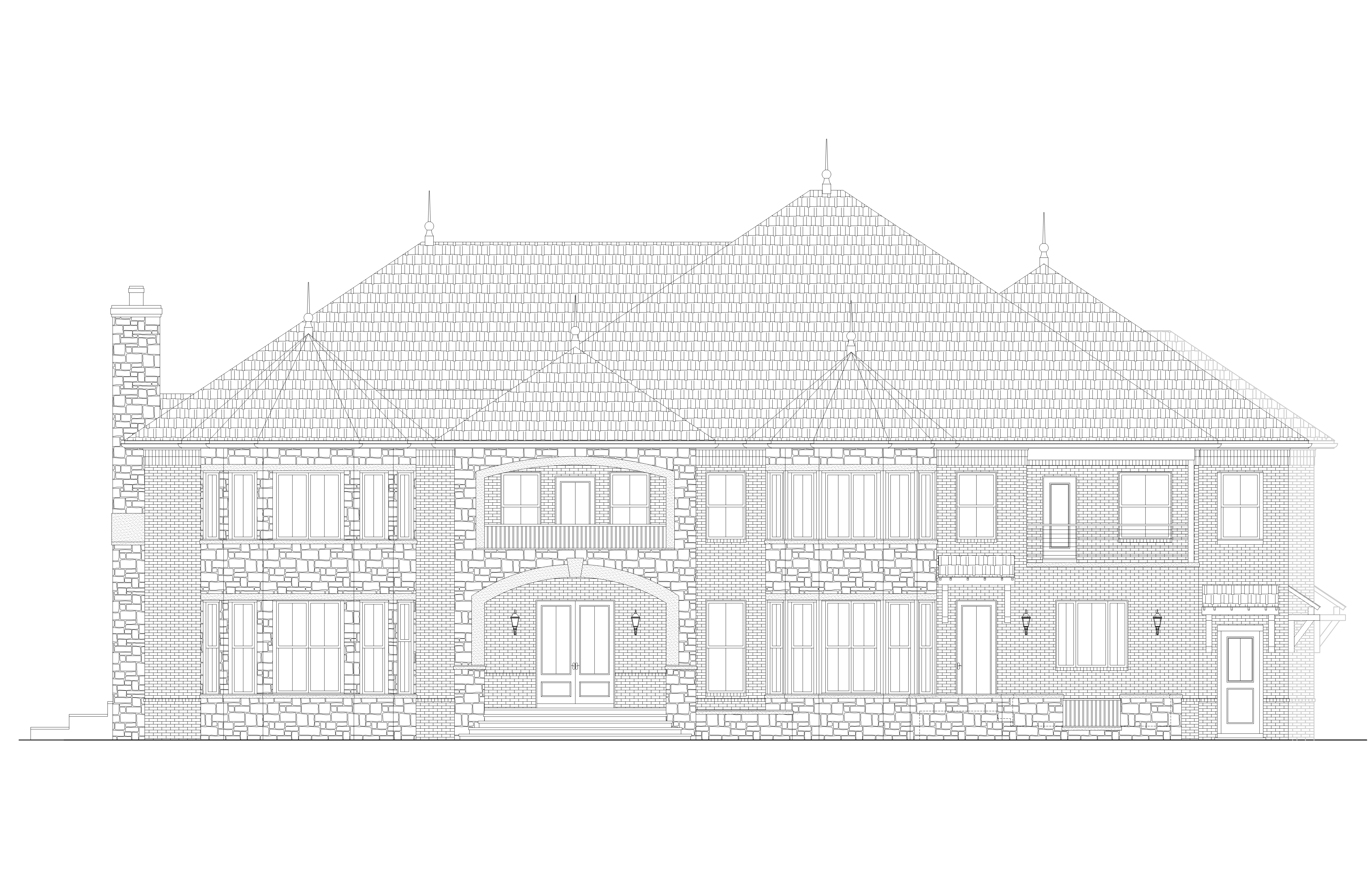 render a majestic stone mansion with intricate architectural details set in a serene countryside atmosphere the stone facade should be a mix of warm cream brick stone and light gray tones creating a natural and inviting appearance the roof is a deep slate gray harmonizing with the stonework windows are framed in black adding a touch of elegance surround the mansion with lush greenery vibrant flowers in a spectrum of purples and yellows and a clear blue sky with soft fluffy white clouds the overall atmosphere is peaceful and luxurious capturing the essence of classic elegance and charm