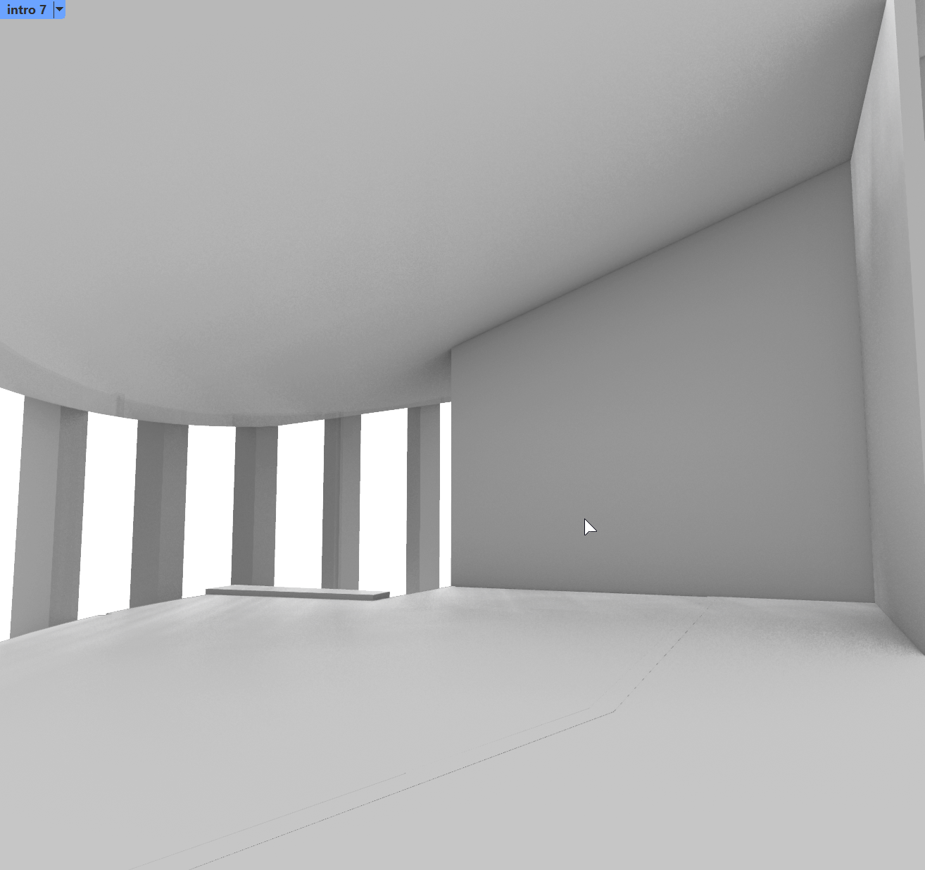 interior watercolor rendering of contemporary kitchen with sloped cieling outside of windows is view of misty forest clouds over a cliff with cozy funiture and futuristic glass and stone