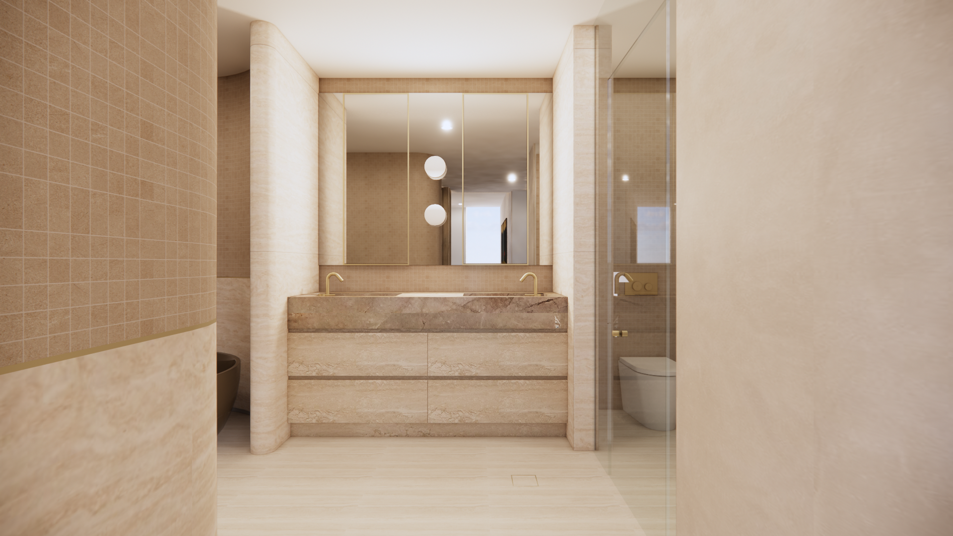 add wabi sabi styling to this bathroom render