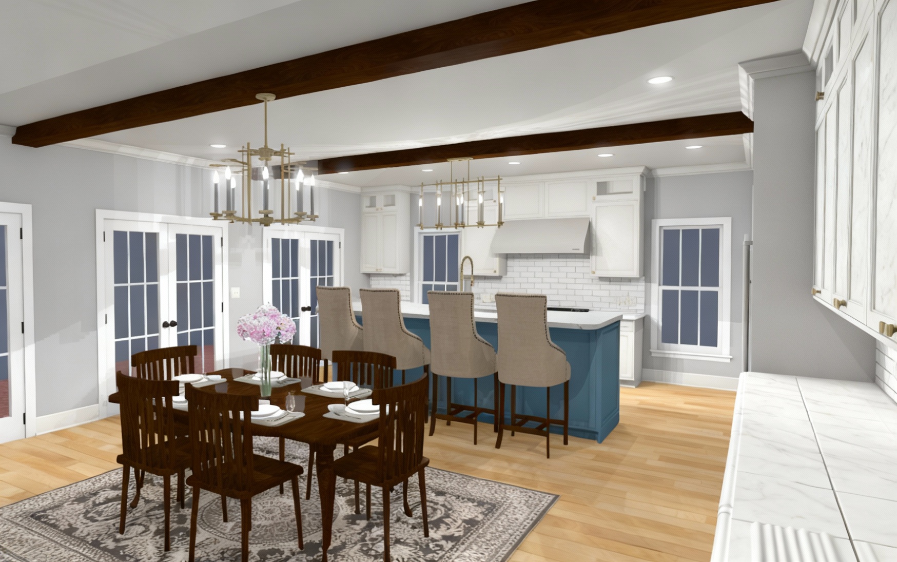 create a photorealistic rendering of the fireplace clad in the terrazzo italy fluted sacra calacatta white 12 24 honed terrazzo tile from tilebar white terrazzo base subtle calacatta style veining and vertical fluted grooves apply the tiles vertically to emphasize the fluted profile with perfect alignment and consistent spacing render the honed terrazzo surface with lifelike texture visible aggregate specks soft veining and gentle matte reflectivity use natural directional lighting to cast soft shadows into the flutes and highlight their depth preserve the existing fireplace proportions but ensure the new cladding looks seamlessly installed with crisp edges and clean transitions the final output should look like a high end architectural photo sharp realistic and elegantly detailed