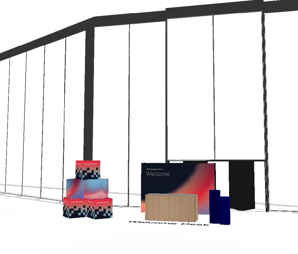 make windows in the background and the plinths next to the desk make it blue mirror acrylic