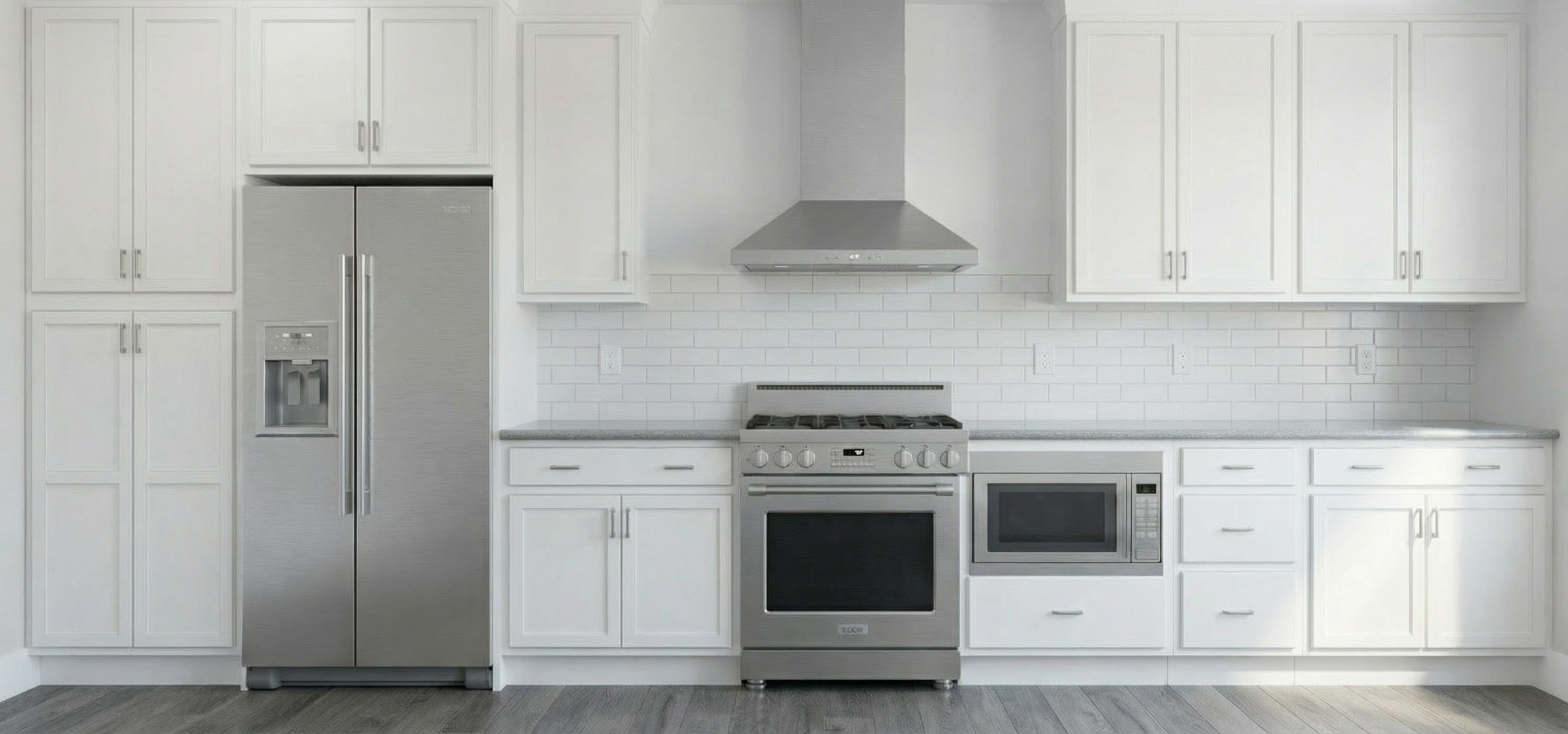 extend the height of the photo by showing the crown moulding on top of cabinets and show the ceiling add warmth to photo with led lighting a runner and light decor on countertops
