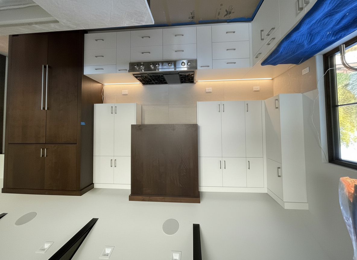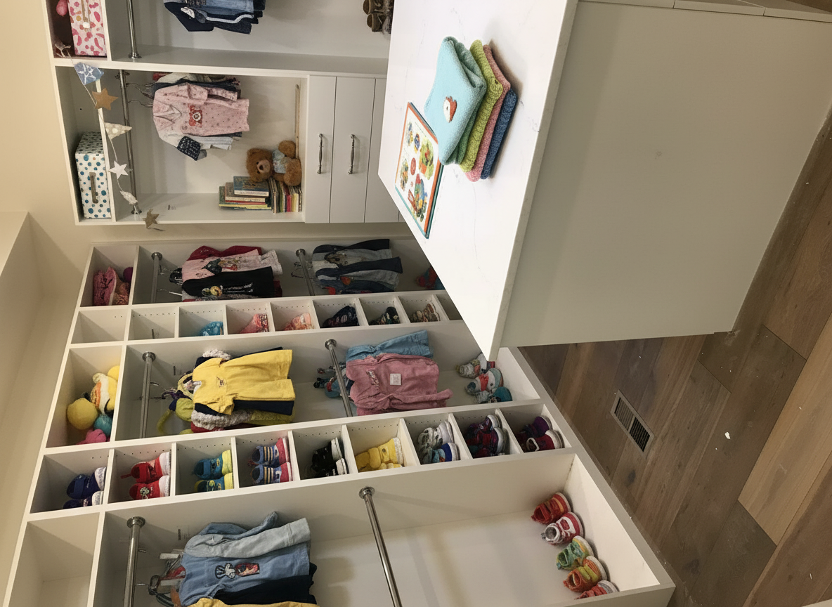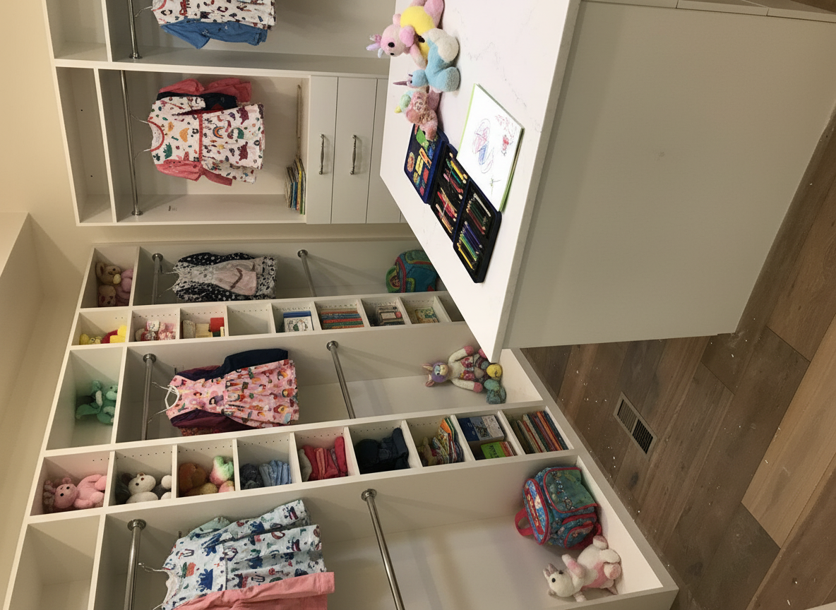 add tile floor put in a full length mirror above the backsplash and stage the countertop with modern bathroom vibes