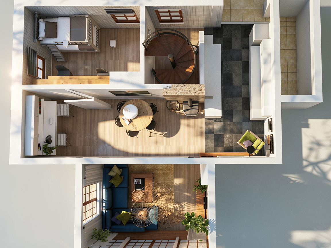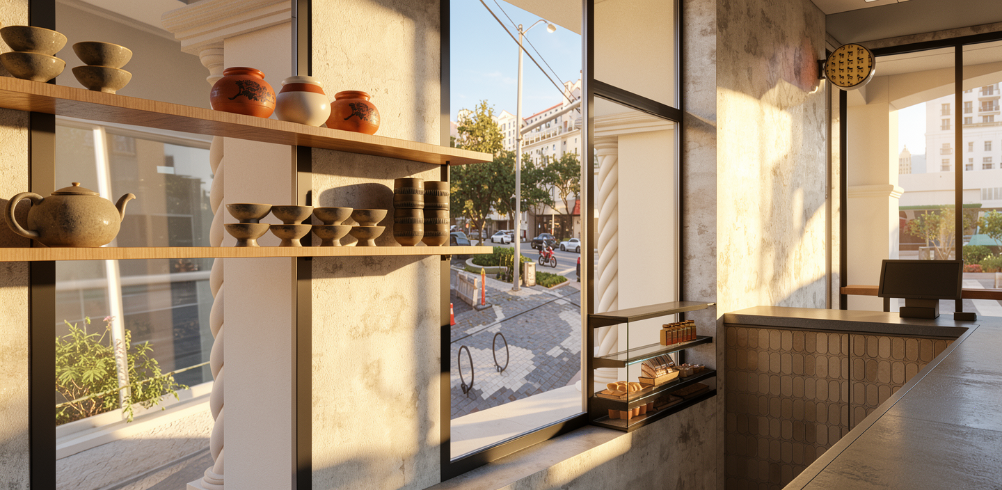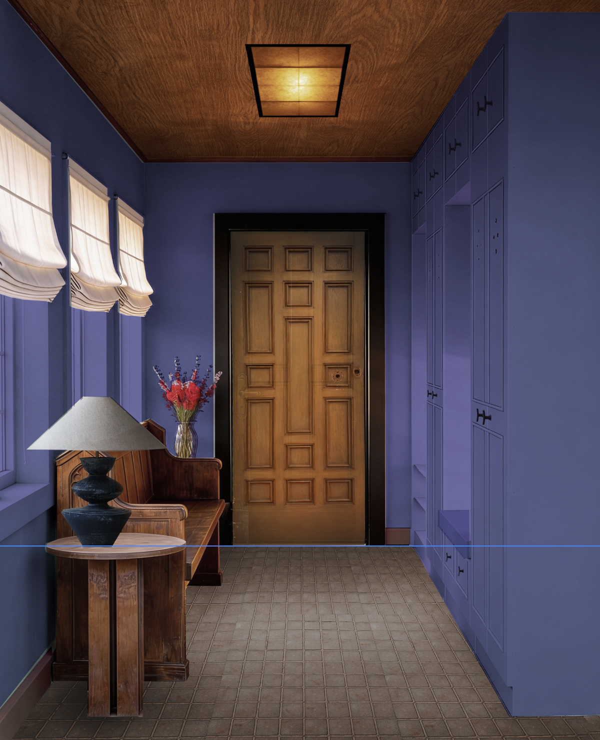 render this again but with more natural light coming in it should feel deep and welcoming keep the wall color the same