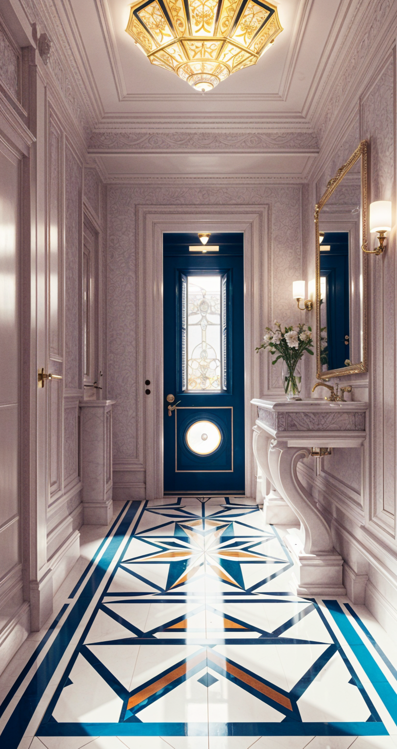 modern luxurious living room with a serene and elegant atmosphere the room features two large tufted beige sofas creating a cozy and inviting seating area the walls are painted in a soft neutral color enhancing the room s sophisticated look a large abstract black and white painting hangs prominently on one wall adding a touch of contemporary art to the space natural light pours in through large floor to ceiling windows with light gray curtains framing the view of lush green trees outside the polished concrete floor is adorned with a stylish geometric patterned gray and white rug a sleek black and green glass coffee table sits centrally providing a modern contrast the ambiance is bright airy and calming with a slight touch of minimalist luxury architecture