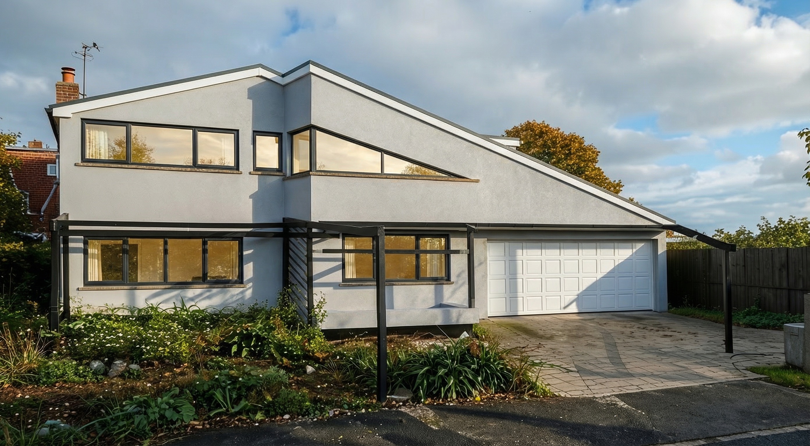 windows to have white frames and add a front door below the middle window and to the right of the bottom left window