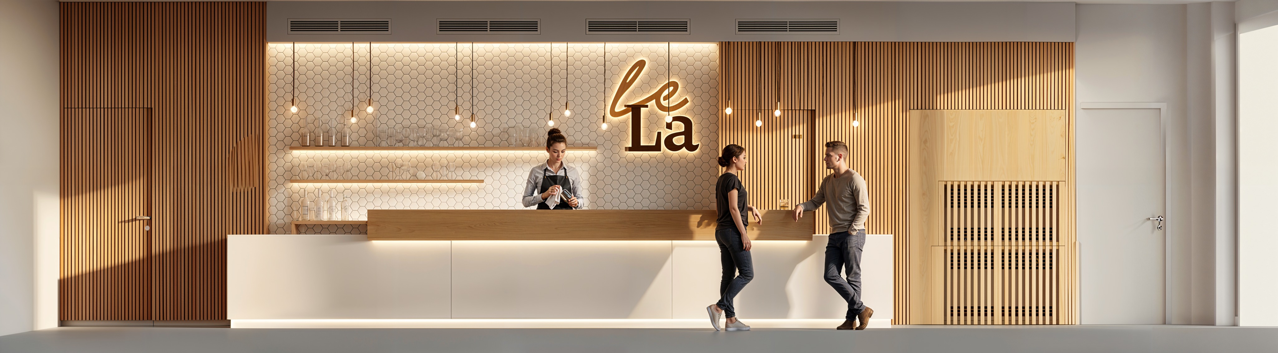 f ge rechts neben der bar in der wandverkleidung eine k hlvitrine ein
