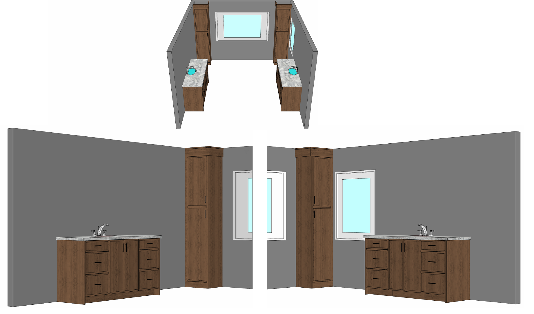 do not change the cabinets in any way preserve the exact cabinet colors materials finishes dimensions door and drawer styles hardware spacing alignment and all geometry exactly as shown do not alter the countertop shape backsplash appliances flooring lighting fixtures or wall structure only remove the construction materials clutter and mess from the scene clean the room and make it look finished and staged add a few simple tasteful home accessories appropriate for the style of the space but do not add or remove any furniture windows or architectural elements maintain the original lighting direction and realism enhance clarity and polish the photo while keeping the cabinetry and room design completely unchanged do not alter the lighting to keep the cabinet colors as they are in the image add a freestanding tup below the window in the top image