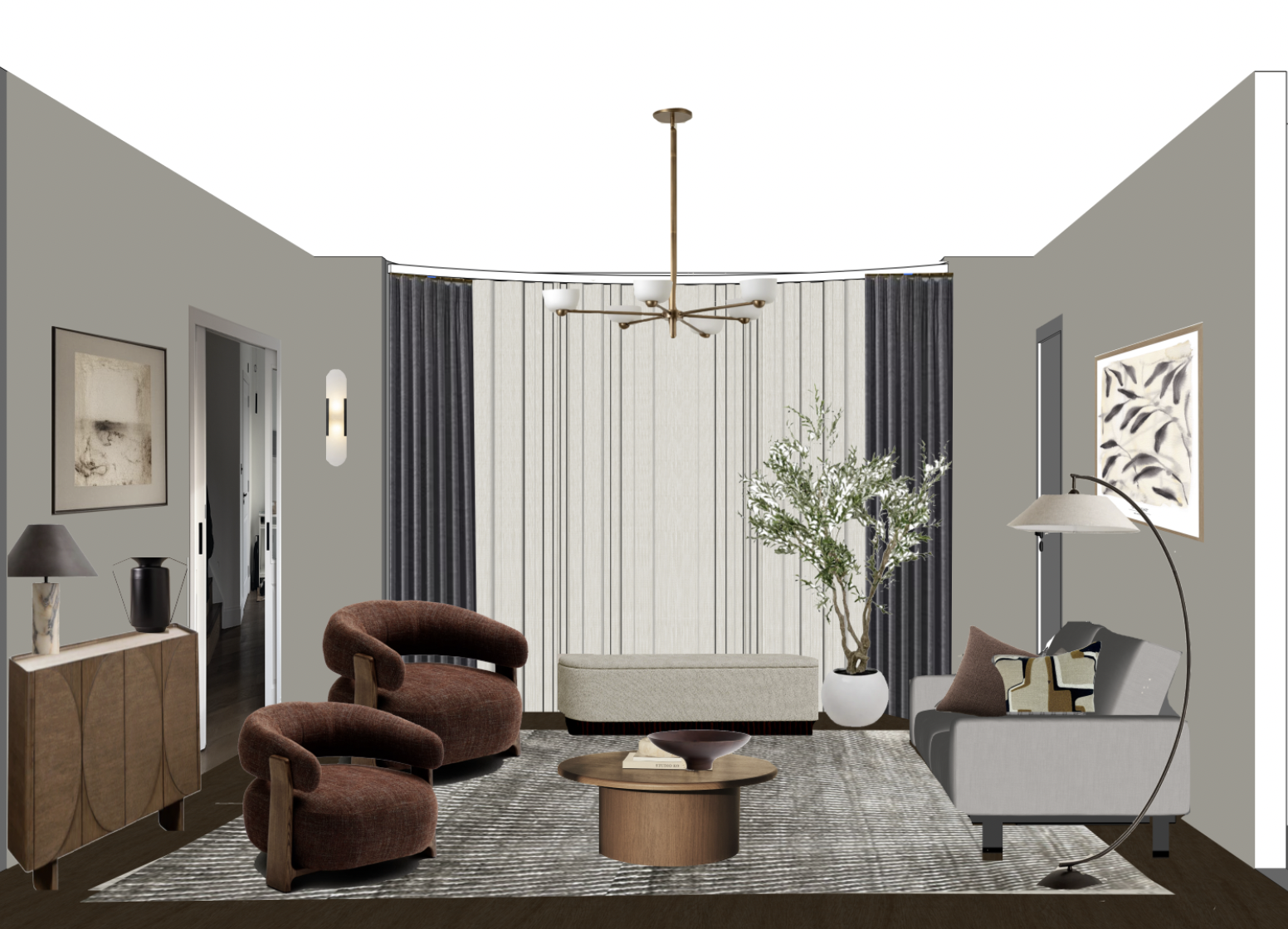 render the image curtains are sheer add light source to the ceiling light the wall sconce and the lamp