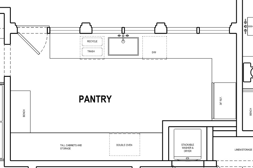 luxury farmhouse pantry with decorative stone details and brass hardware