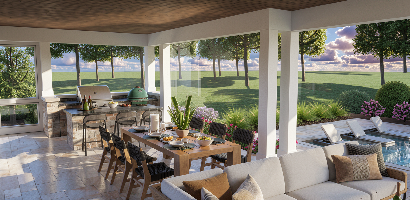 partly cloudy sky some deciduous trees in background white windows add gutters