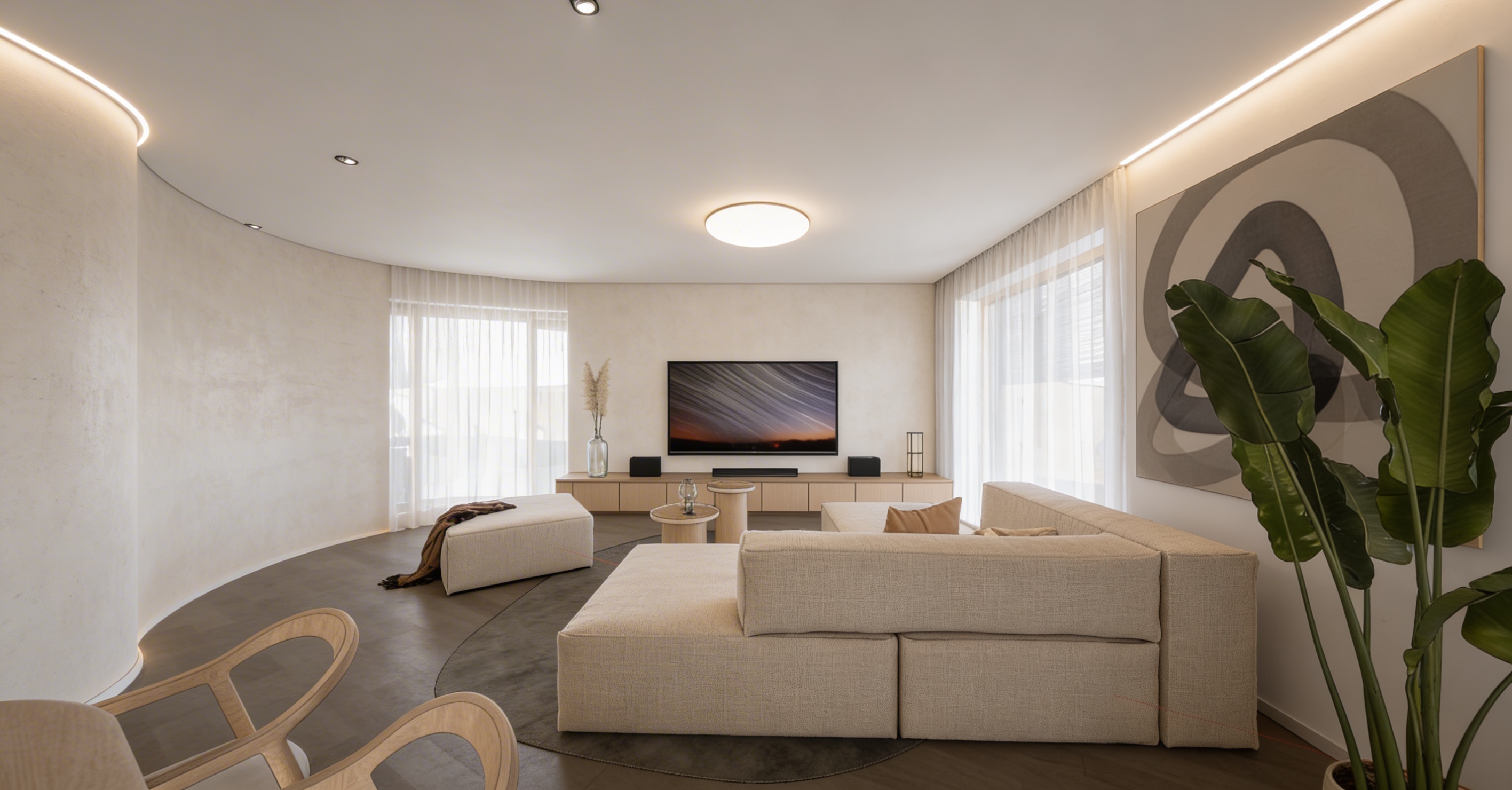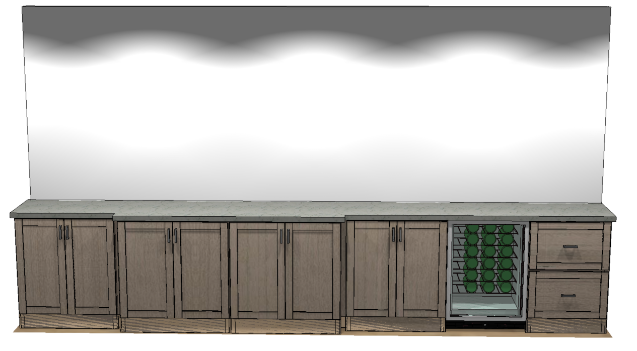 background as living room add glass shelves above right two cabinets add tv above