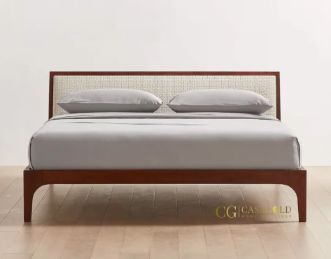 make me a long wall length bed head with a walnut frame and whitewashed rattan like this