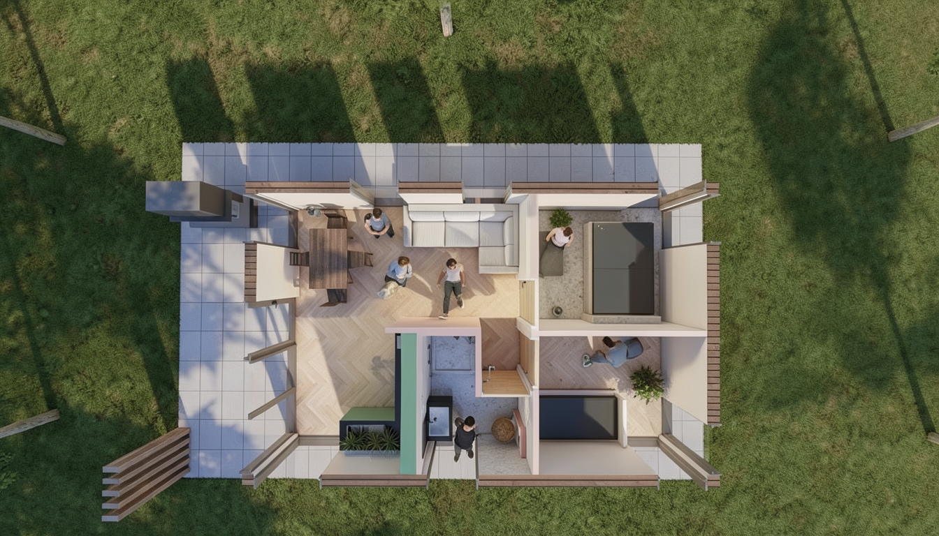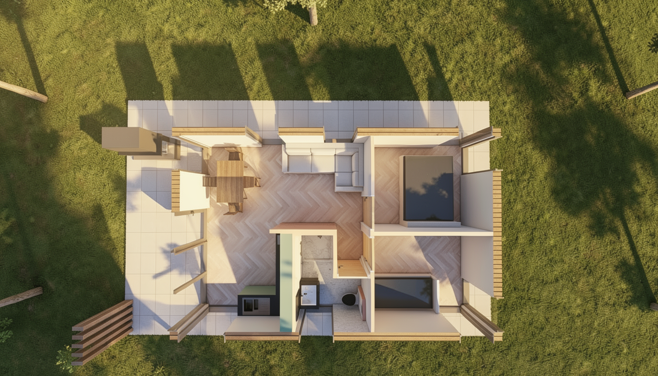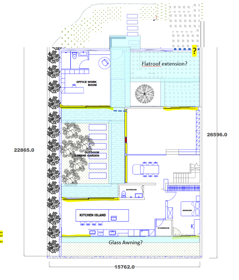 bauhaus exterior shot please see this floorplan of my semi detached plot the rectangular surroudning exterior wall is 10ft tall with no openings yellow highlighted are full height glass sliding doors architecture