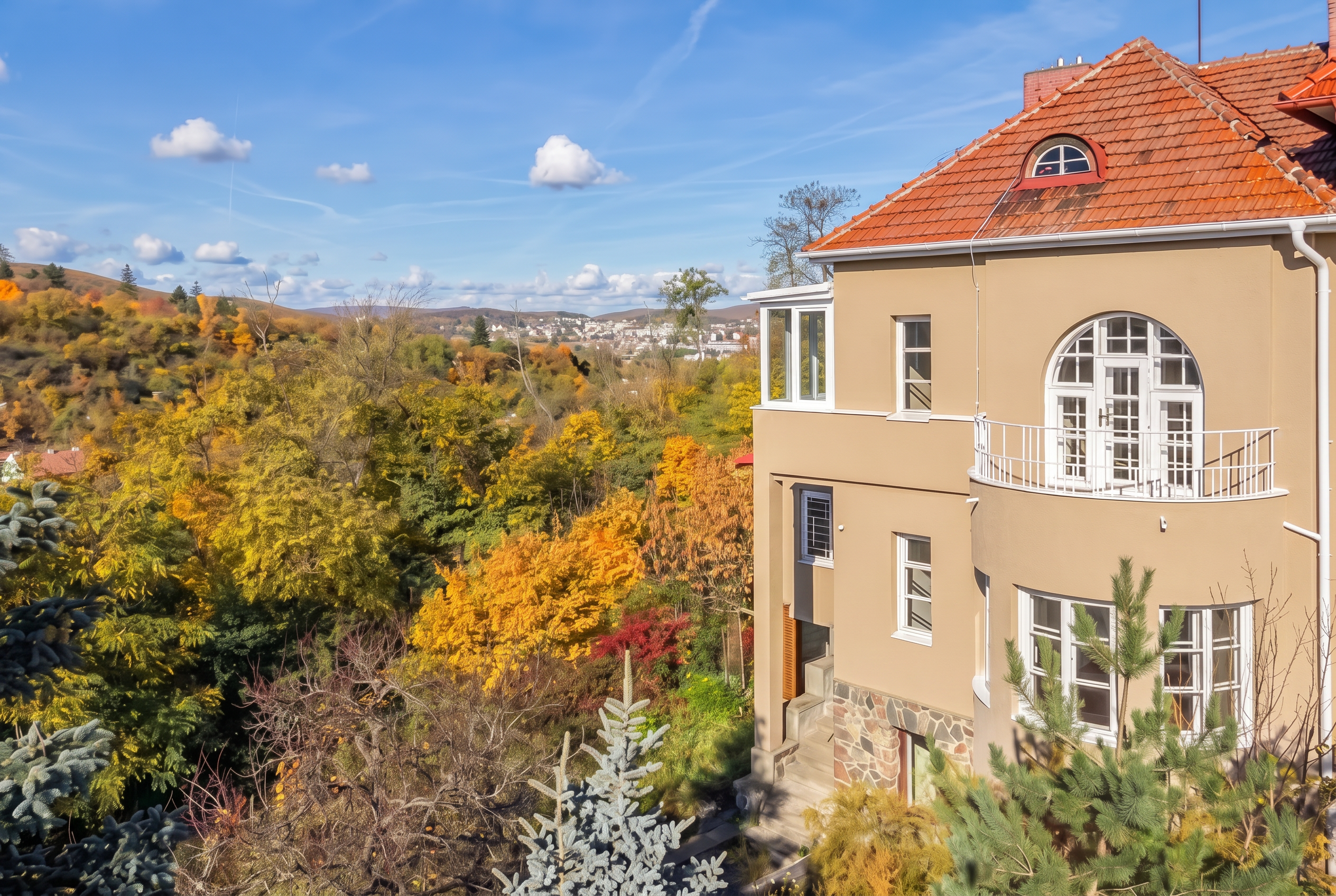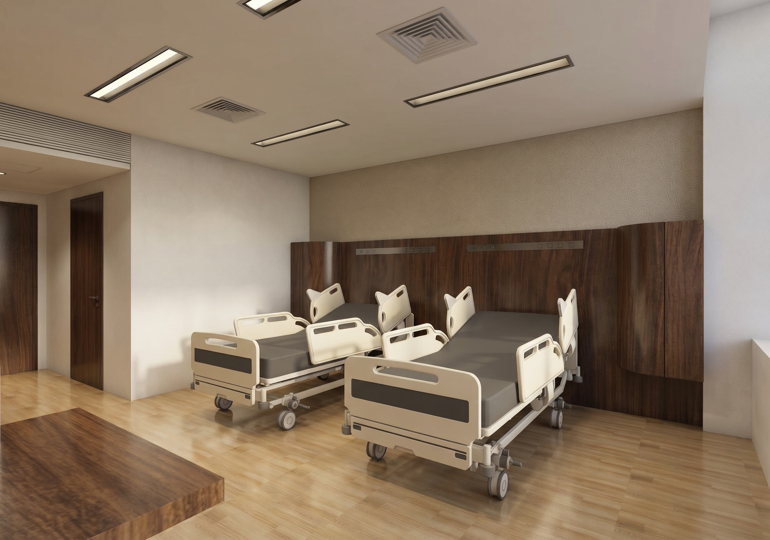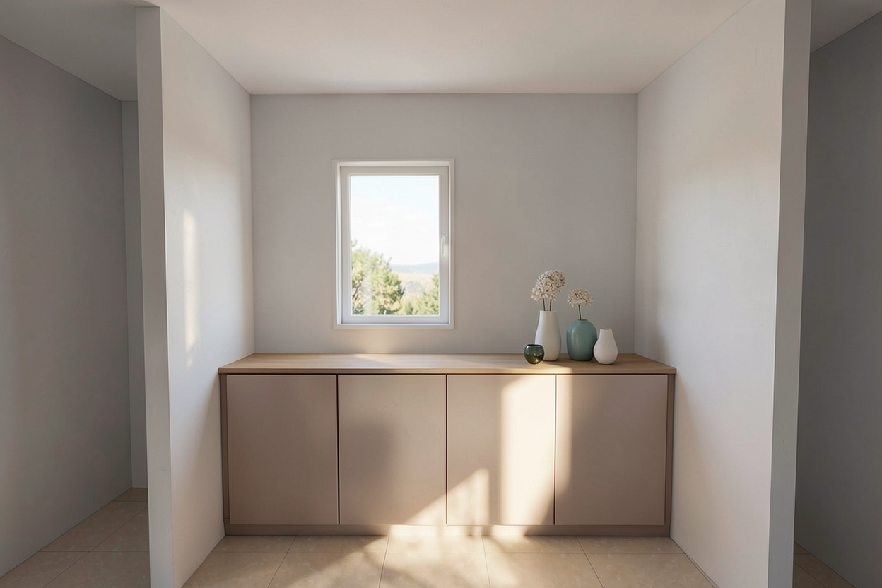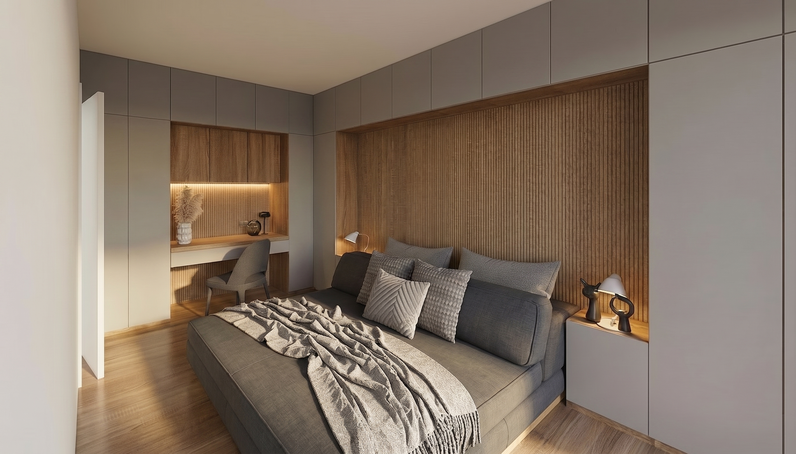 cozy room with a nightstand and wide windows