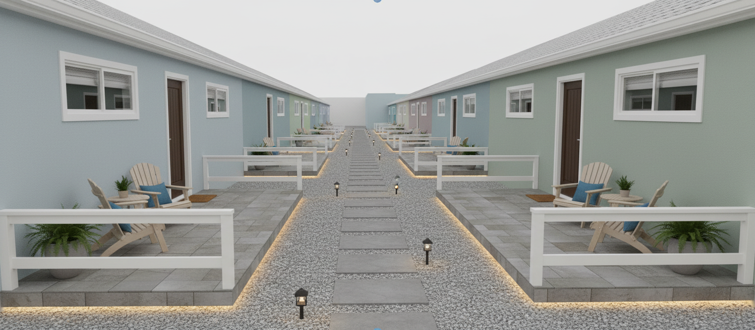 remove little lights make walkway solid add small ramps from walkway to the patios
