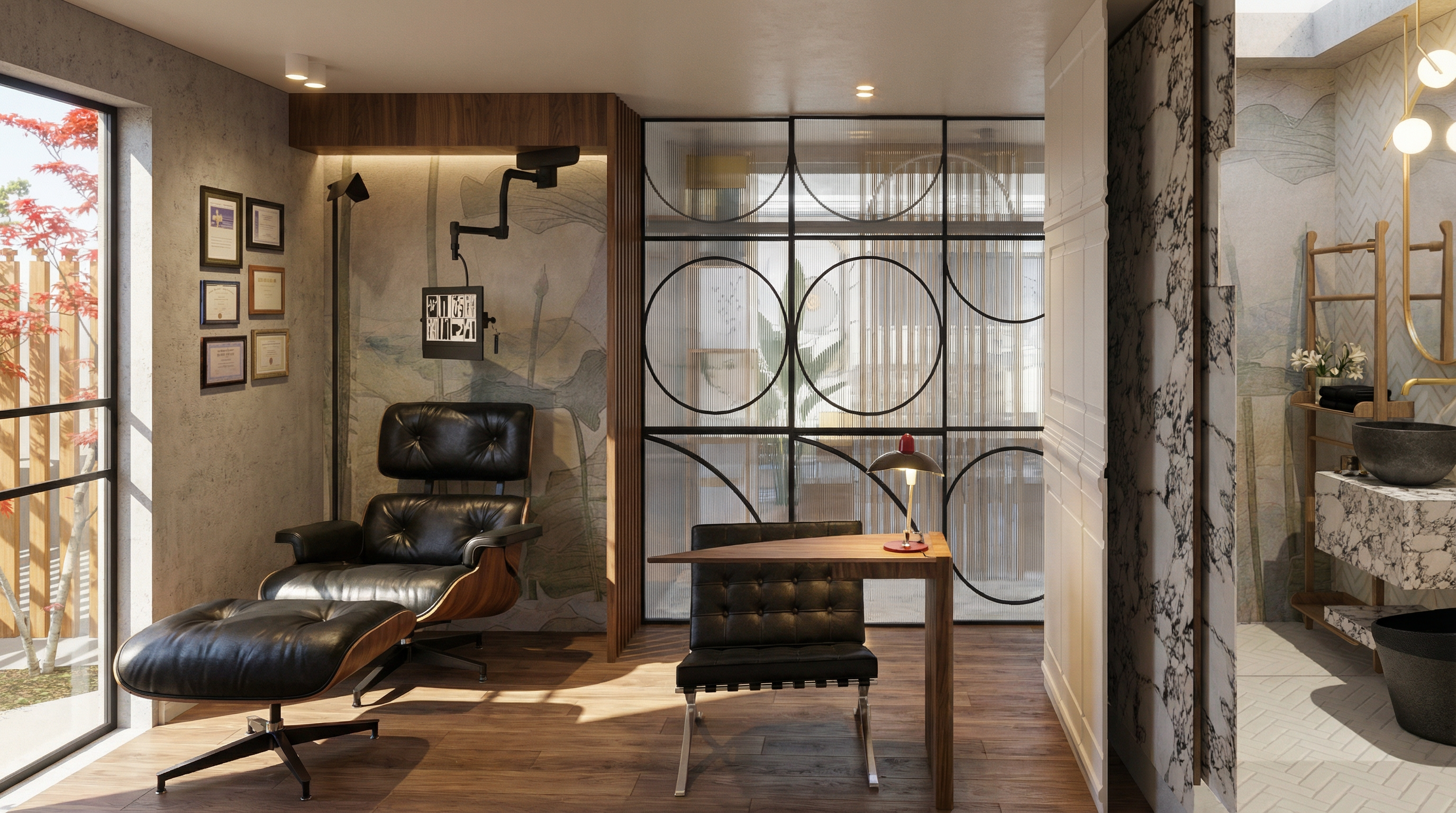 black board and batten cladding black roof black window frames low timber decks lawn extensive native plants with timber edge trees in background sunset interior lights on