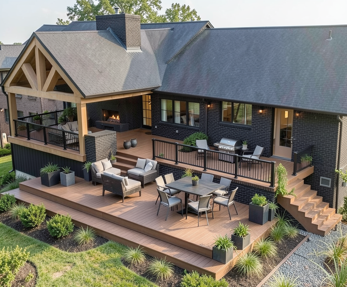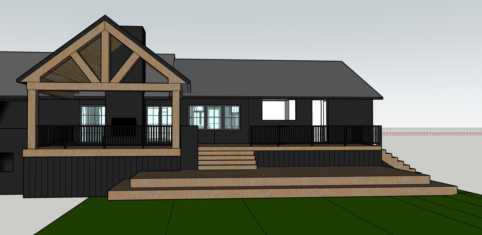 surface of house is black brick render to be modern and sophisticated with tailored and southern landscaping