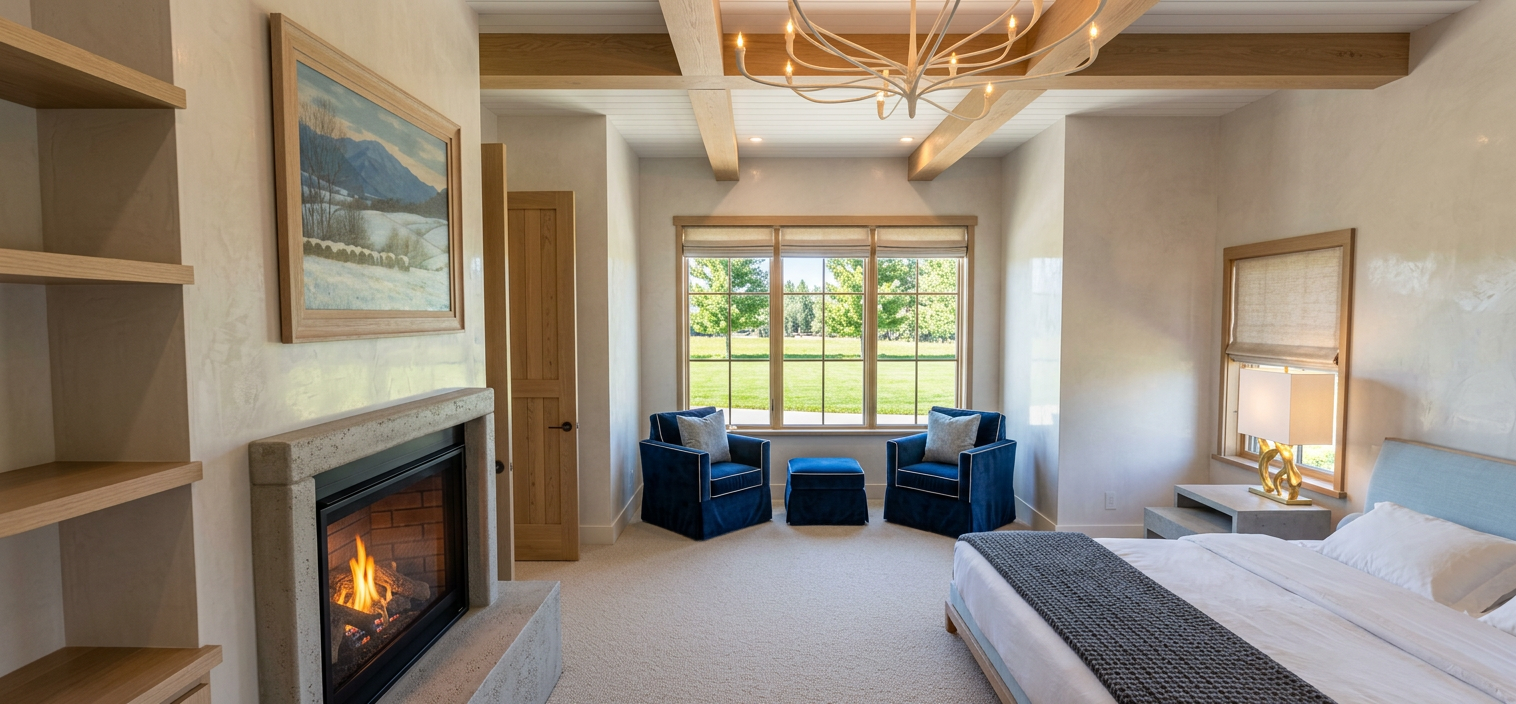 task enhance and embellish the provided building design into a photorealistic architectural masterpiece style art direction high end architectural photography archdaily editorial style 4k high resolution ultra detailed and implementation feasible components main subject a modern building setting situated overlooking appalachian mountain landscape during the golden hour details add physical material micro details like visible wood grain and realistic reflections on glass surfaces add inside mount roller shades add fire in fireplace add accessories and rugs add art on walls show hidden glow of light in ceiling soffit lighting lighting volumetric sun rays filtering through trees warm interior ambient lighting visible through windows to create depth and life color color balance the photo warm and cold color tone mixtures and good contrast add interior lighting constraints maintain the exact structural silhouette of the original design no over smoothing or plastic ai look prioritize raw unretouched texture fidelity ensure all structural lines are perfectly vertical and parallel no lens distortion