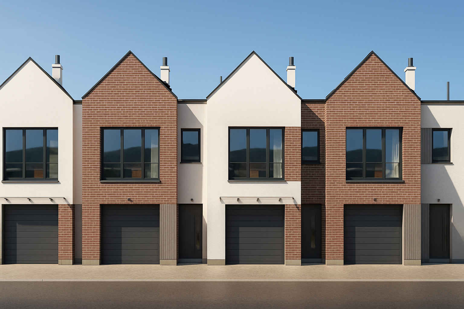 do not change the windows the facade is white plaster and slit concrete do not use bricks green in the front