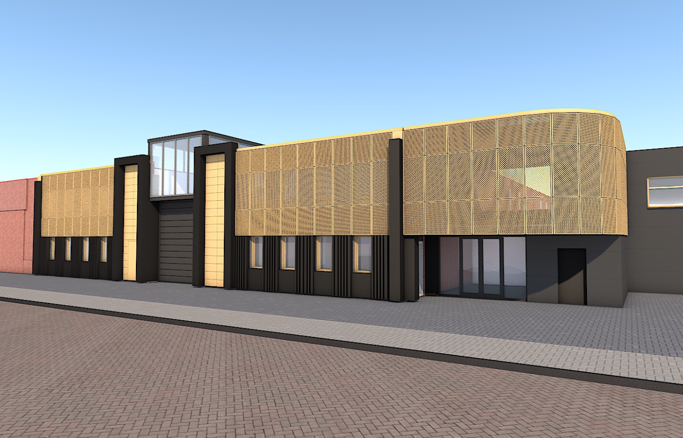 a mixed media architectural board of this building with abstract diagrams with layerd maps and gradient overlays and minimalist pastel colord street elevations rendered in a hybrid style of photorealism pencil sketch and ink drafting lines