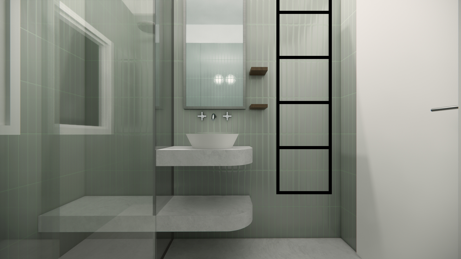 make the shower glass ribbed add towels on the radiator towel hanger add a basket underneath the sink
