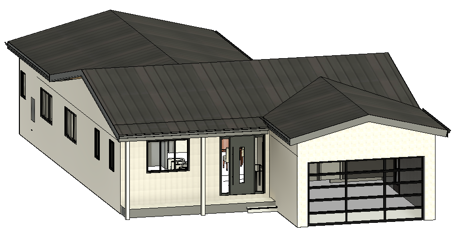 black standing seam roof add driveway in front of garage door white limestone on garage black glass garage door front wall is board and batten