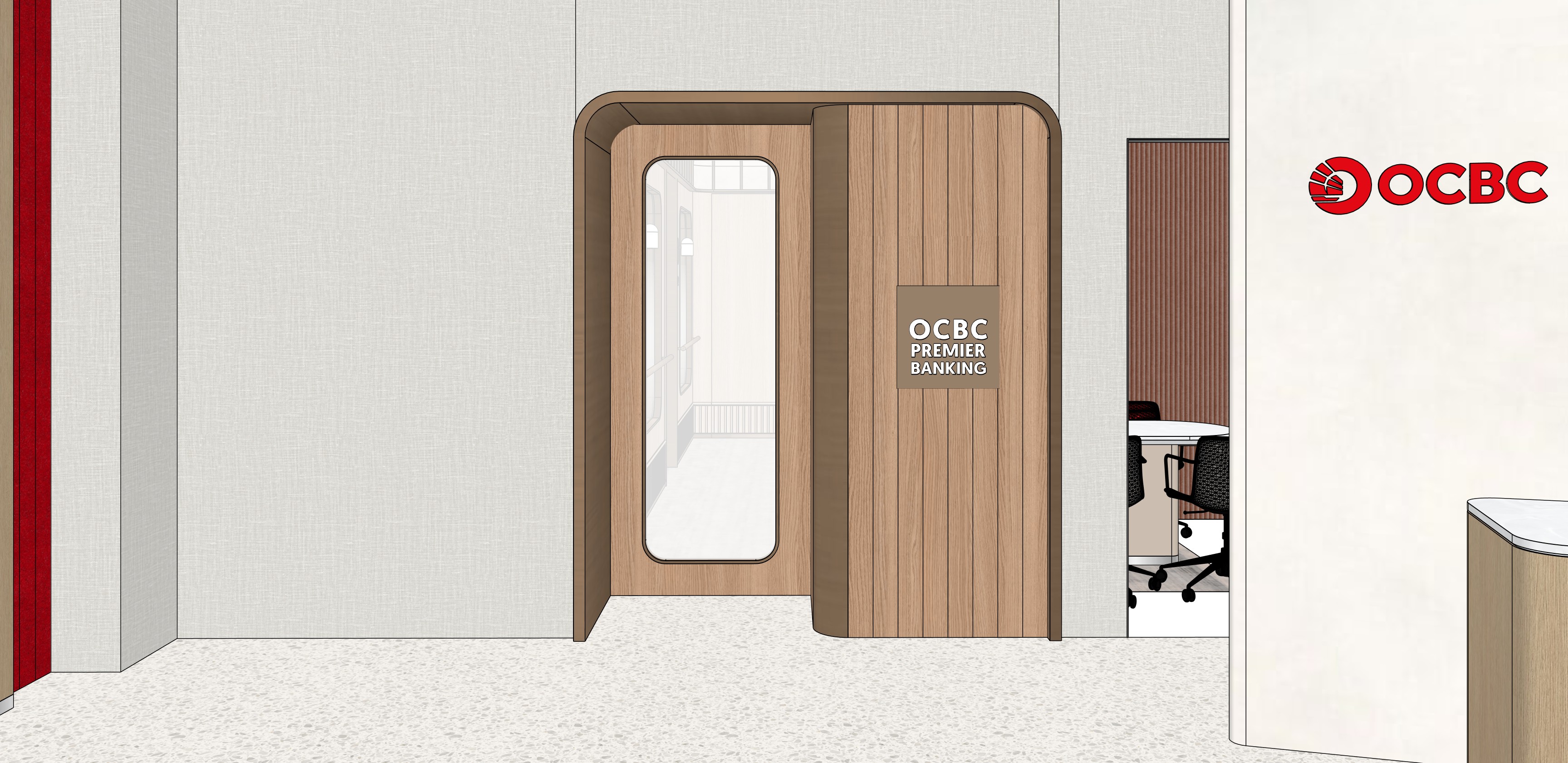 high gloss lacquered wood logo in matte bronze metal text white front lit portal in matte bronze metal door glass frosted