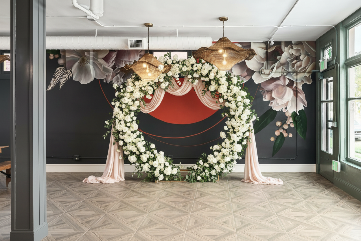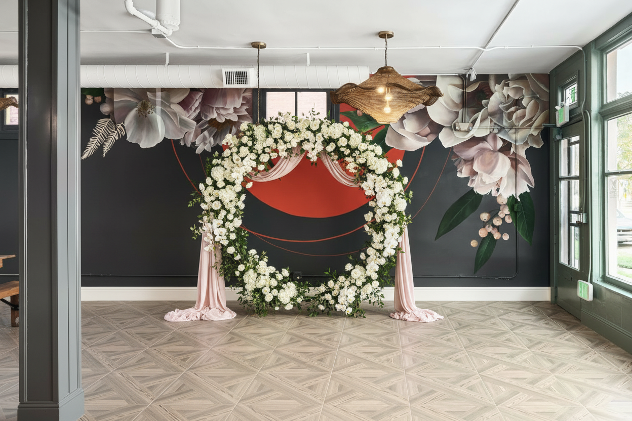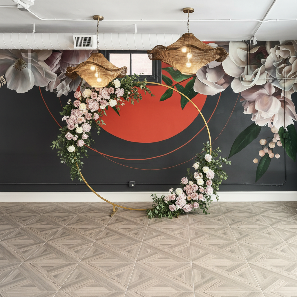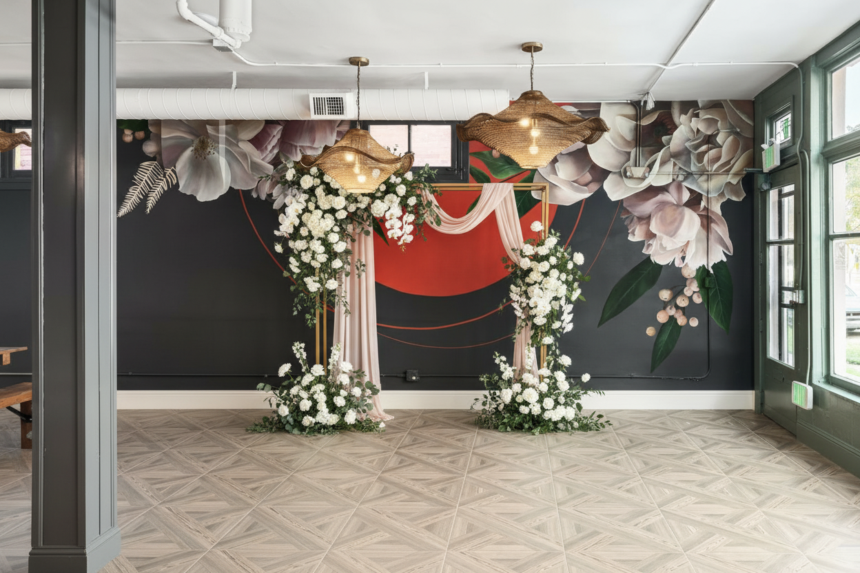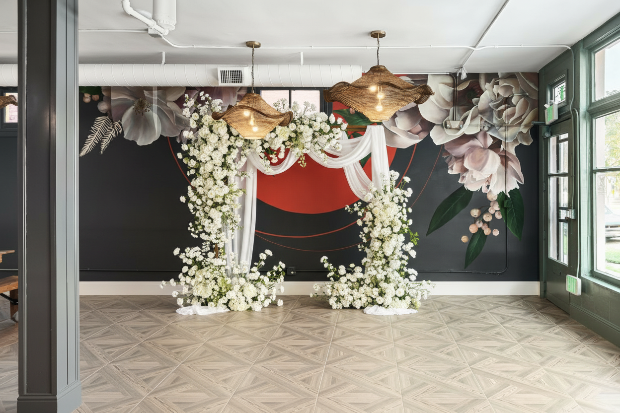add clear acrylic chairs to the foreground of this image the chairs should be lined up facing the wall