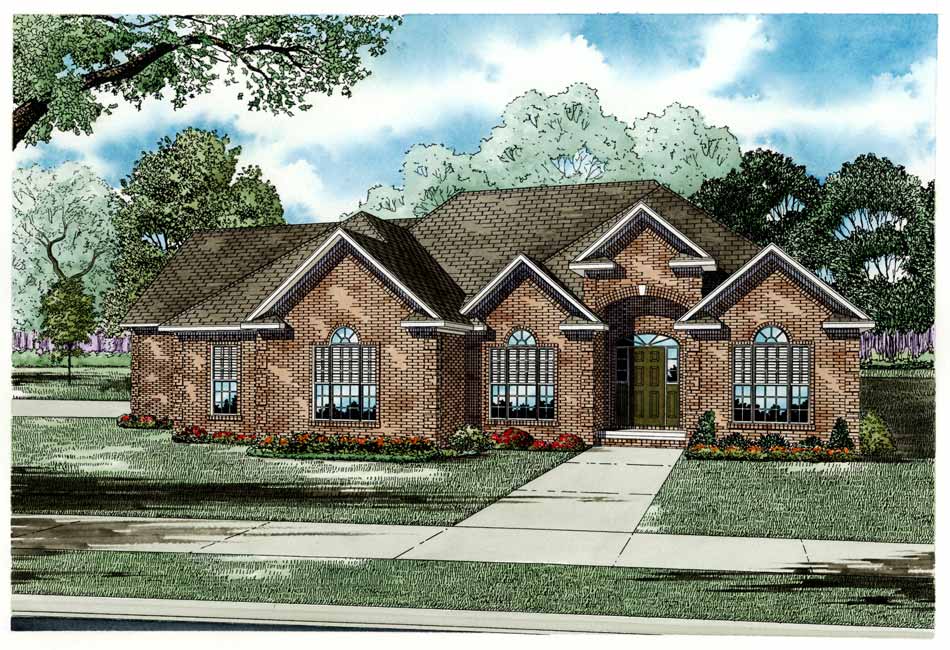 create real high resolution photo with plush trees and bushes with vibrant sky keep all details exact as original match existing colors match details exact match all architectural details exact brick color to be a slurry off white brick window frames to be black
