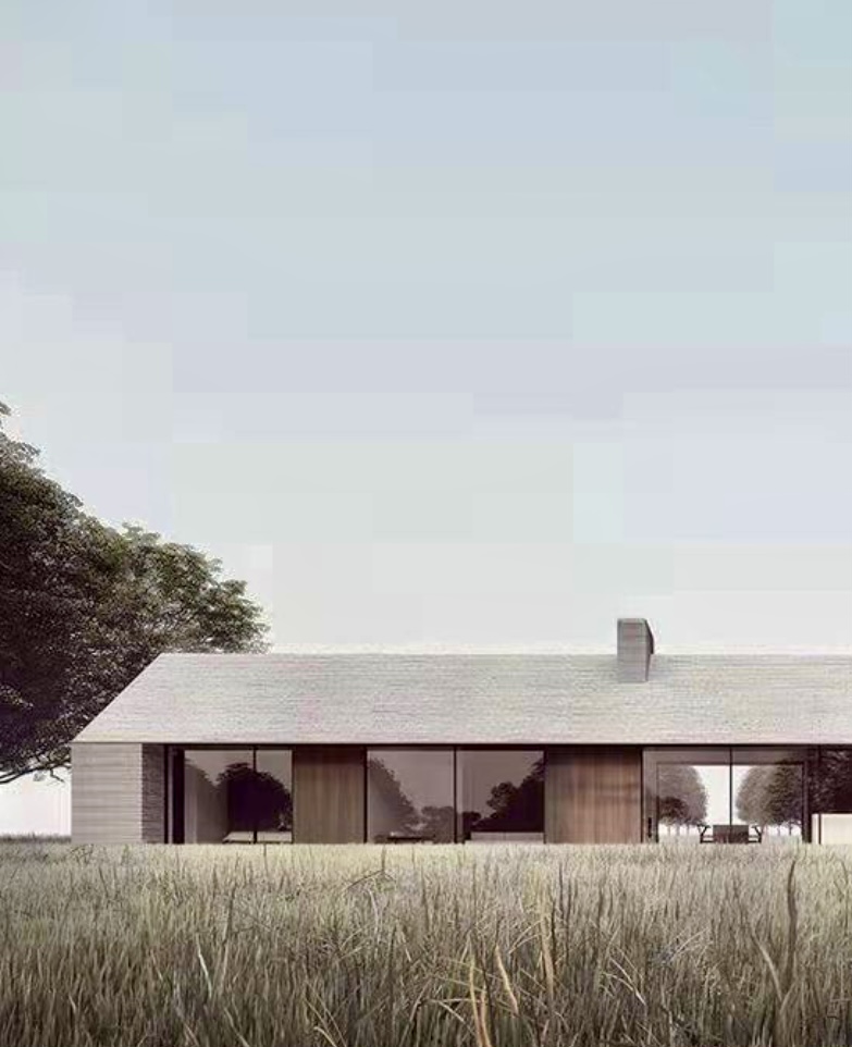 classical exterior shot in an australian rural setting at sunset with a lush green garden external colour pallette of white and soft grey architecture