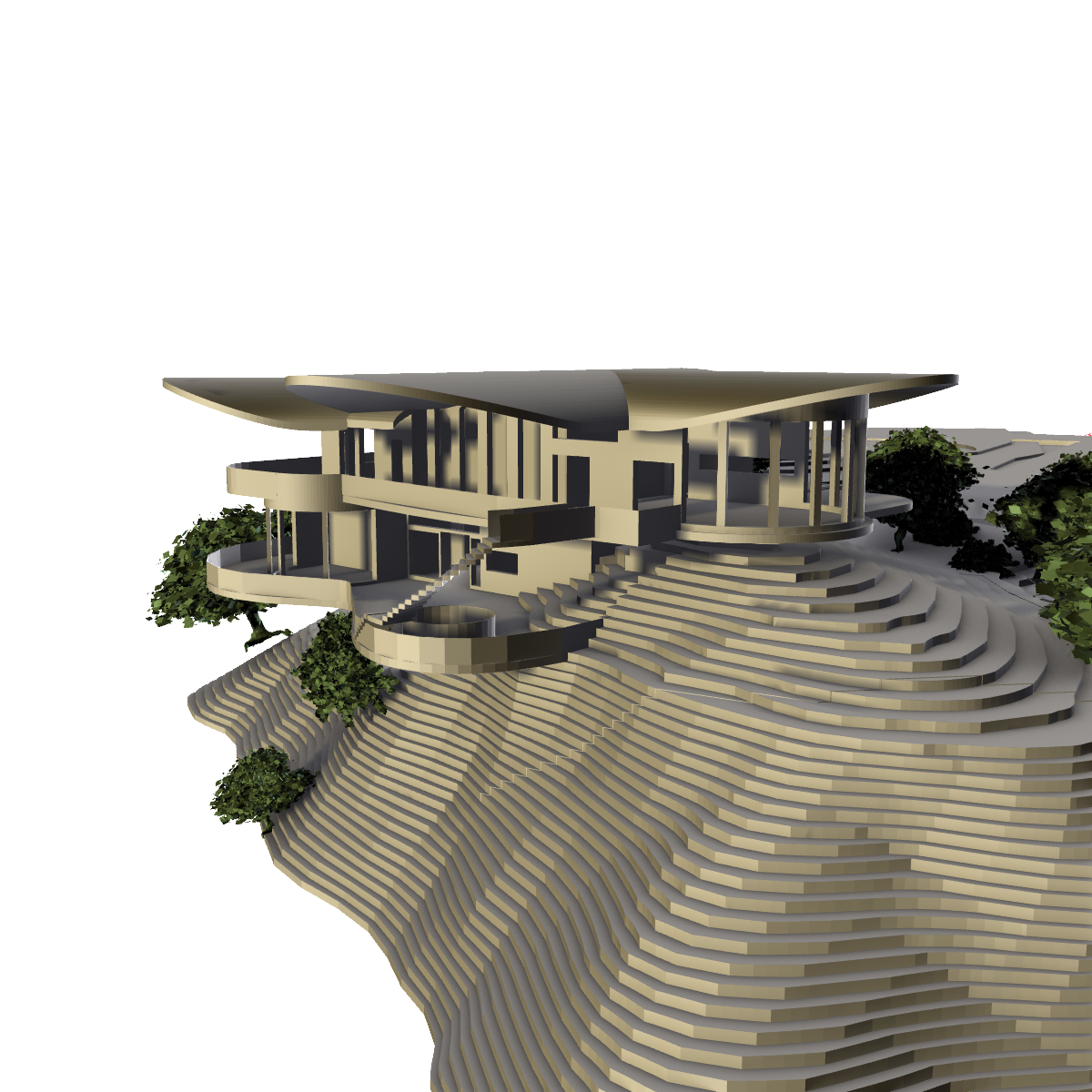 contemporary mountain research station architectural visualization perched on an alpine cliff with rugged granite strata and sparse evergreens sleek black glass glazing with subtle tint wood steel palette warm vertical cedar cladding and soffits slatted wood screens exposed steel framing gussets and bolts thin standing seam steel roof with crisp eaves precise joinery and pbr materials realistic environmental integration into rock ledges light planting midday sunlight crisp blue sky gentle atmospheric haze clouds below and light wisps above high elevation reflections on glass balanced background slightly de saturated to keep focus on architecture cinematic 3 4 hero view 24 35mm lens clean composition no people cars signage archsynth style ultra detailed architectural rendering 8k photorealistic realistic materials and lighting high contrast where sun hits warm wood tones against cool steel