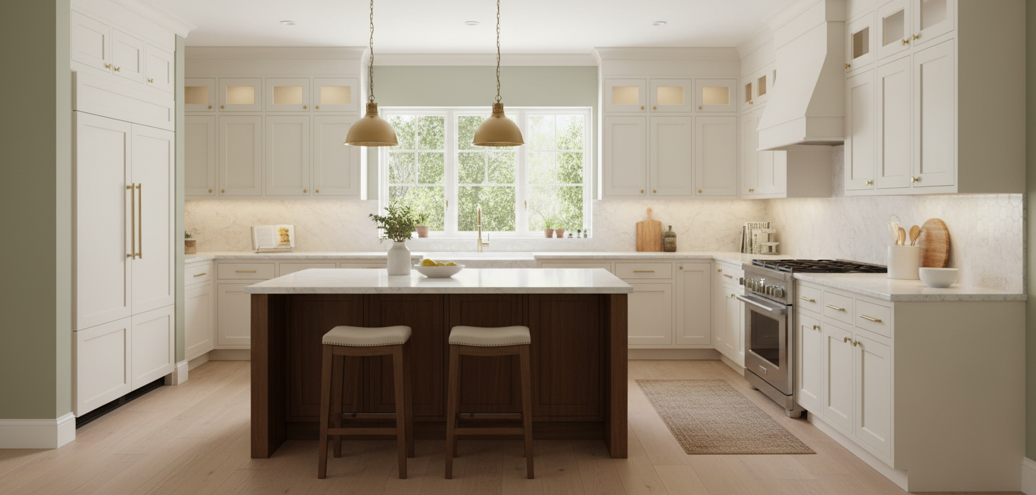 zaha hadid interior shot keep this exact layout off white inset cabinets brass hardware rom armac martin there is a window over the sink the sink has a stone front only show the elevation of this one wall the view is out to a backyard with green grass and a pool architecture