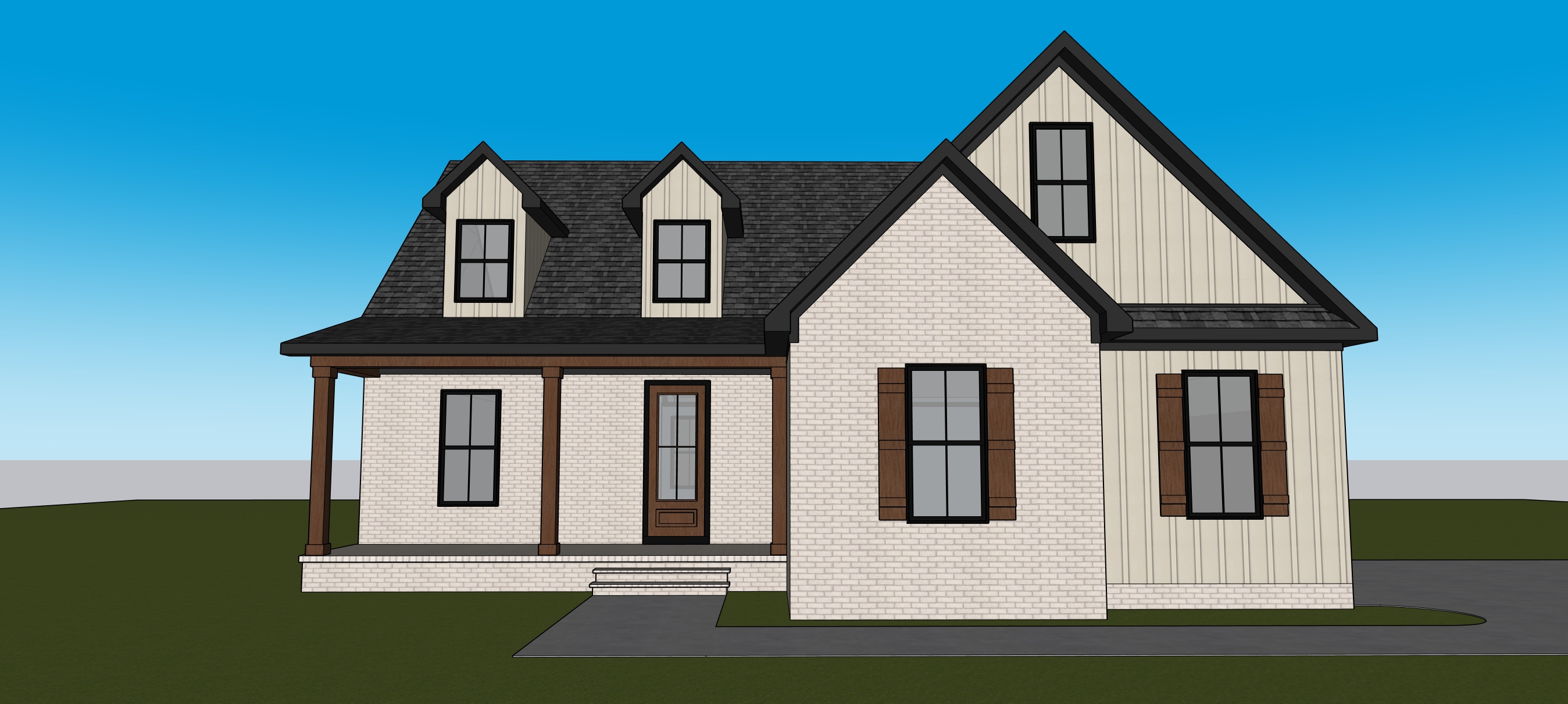 maintain colors and design trees in background add landscaping make realistic