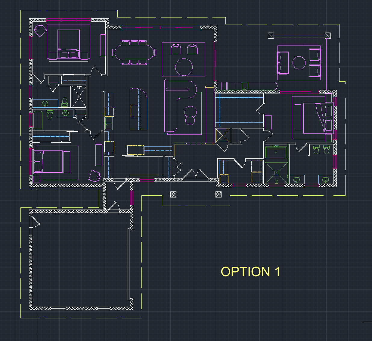convert this floor plan into a realistic isometric 3d view of a full house show the space from an elevated angle with furniture walls and details visible modern european style mixed with mid century modern use the same furniture as shows on the plan do not change the orientation of the floorplan