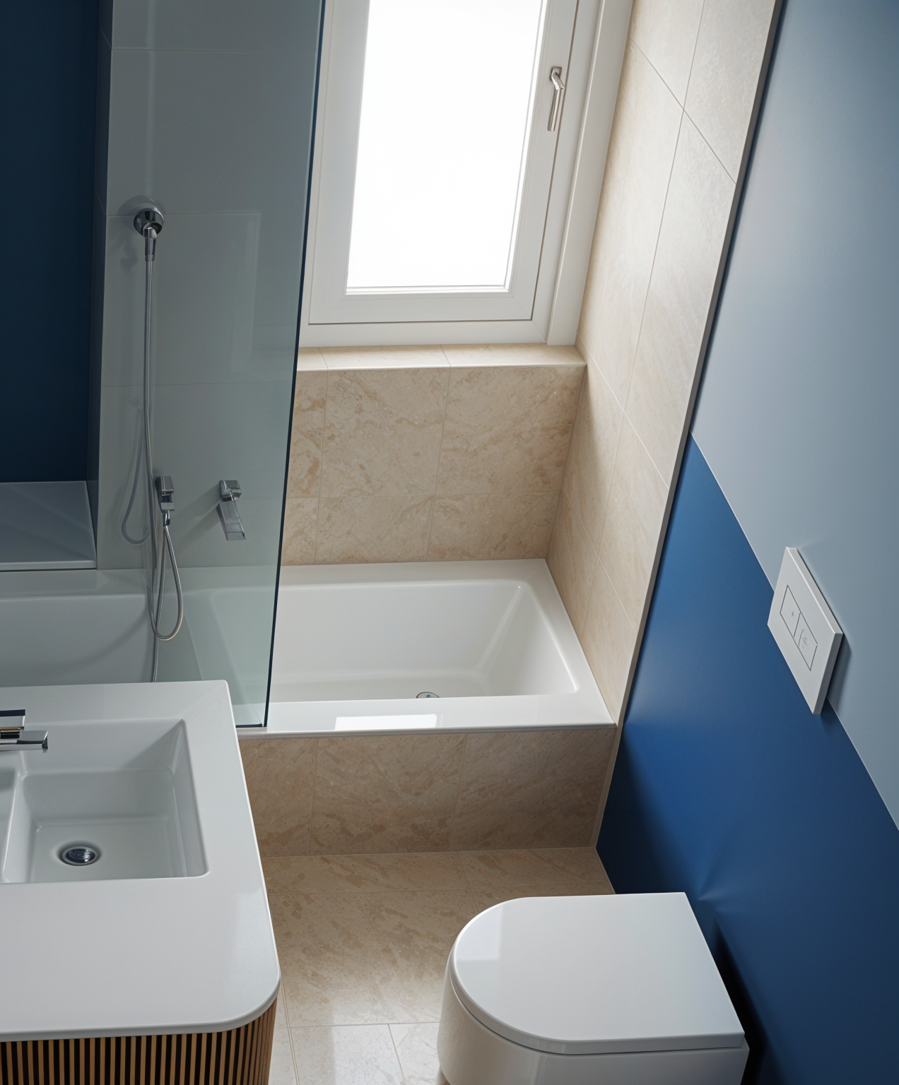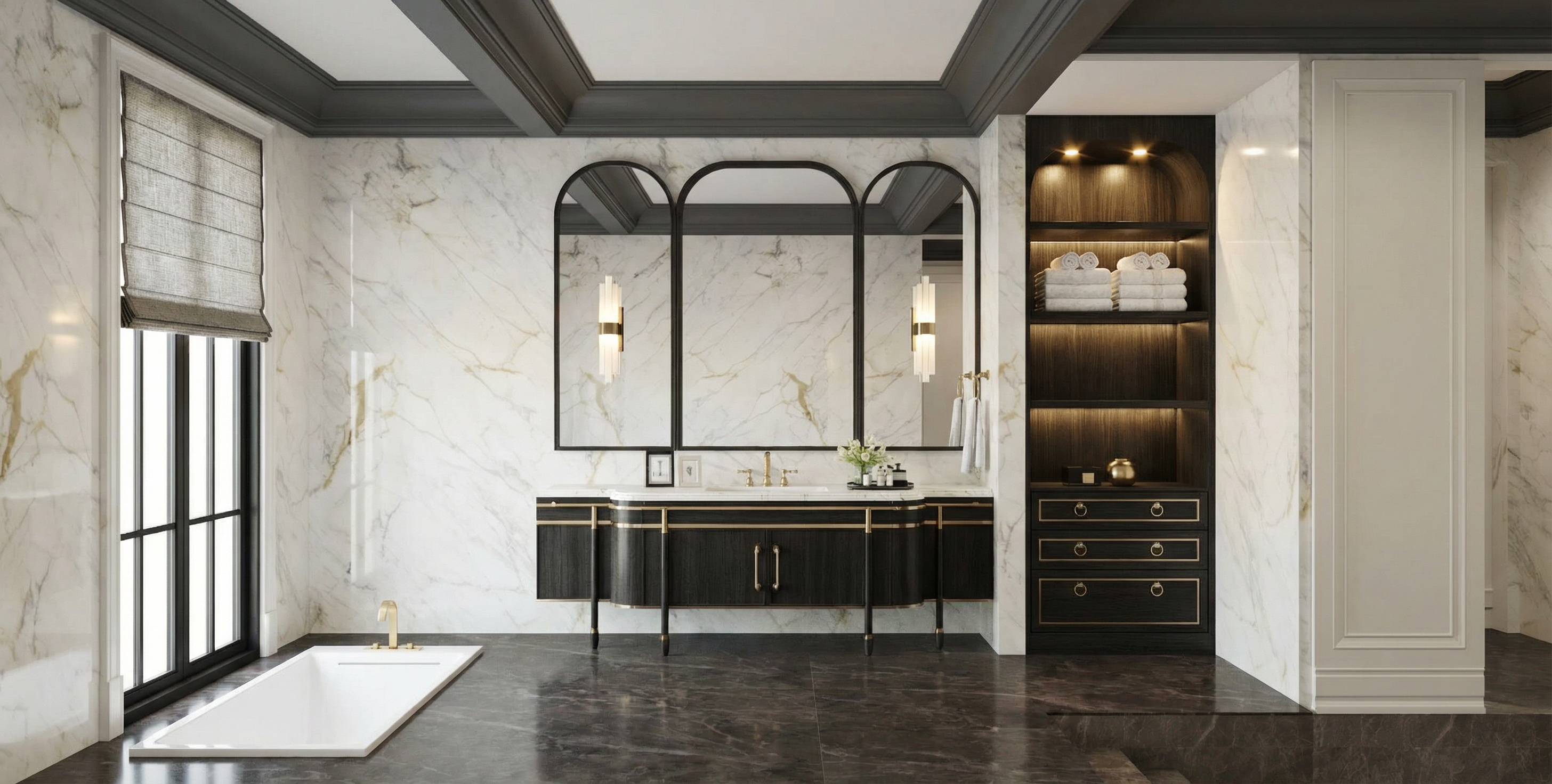 keep same interior design same materials and colors same furniture and lighting put some books on the shelves keep all walls and ceiling white