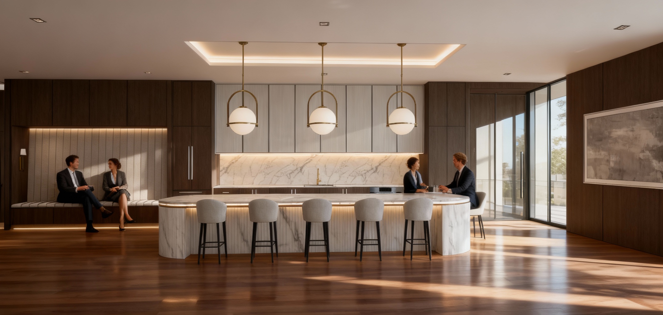 daily morning in the kitchen all cabinets in white matt surface countertop in black stone led above the sink lightspots on the top for more brightness the floor in great beige white tiles like a stone led strip above the sink more light in the front of the kitchen the oak surfaces in oak bright lower sunlight more lightspots on the top