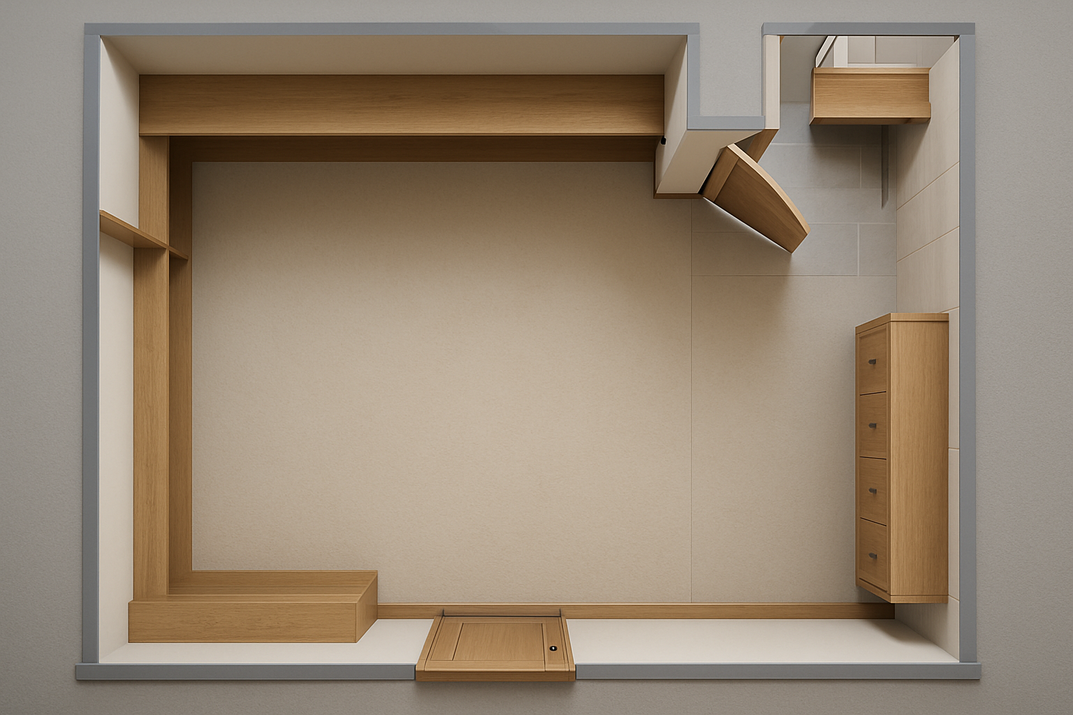 large double height cinematic lounge light filled white ceiling calm mineral architectural envelope organic marble terrazzo floor sunken circular mid century conversation pit patterned upholstery in warm muted tones a few striking accent elements introducing bold color and shine glossy lacquer coffee tables sculptural velvet ottomans in deep jewel tones metallic accents colored glass decor refined but seductive atmosphere luxurious and playful without clutter