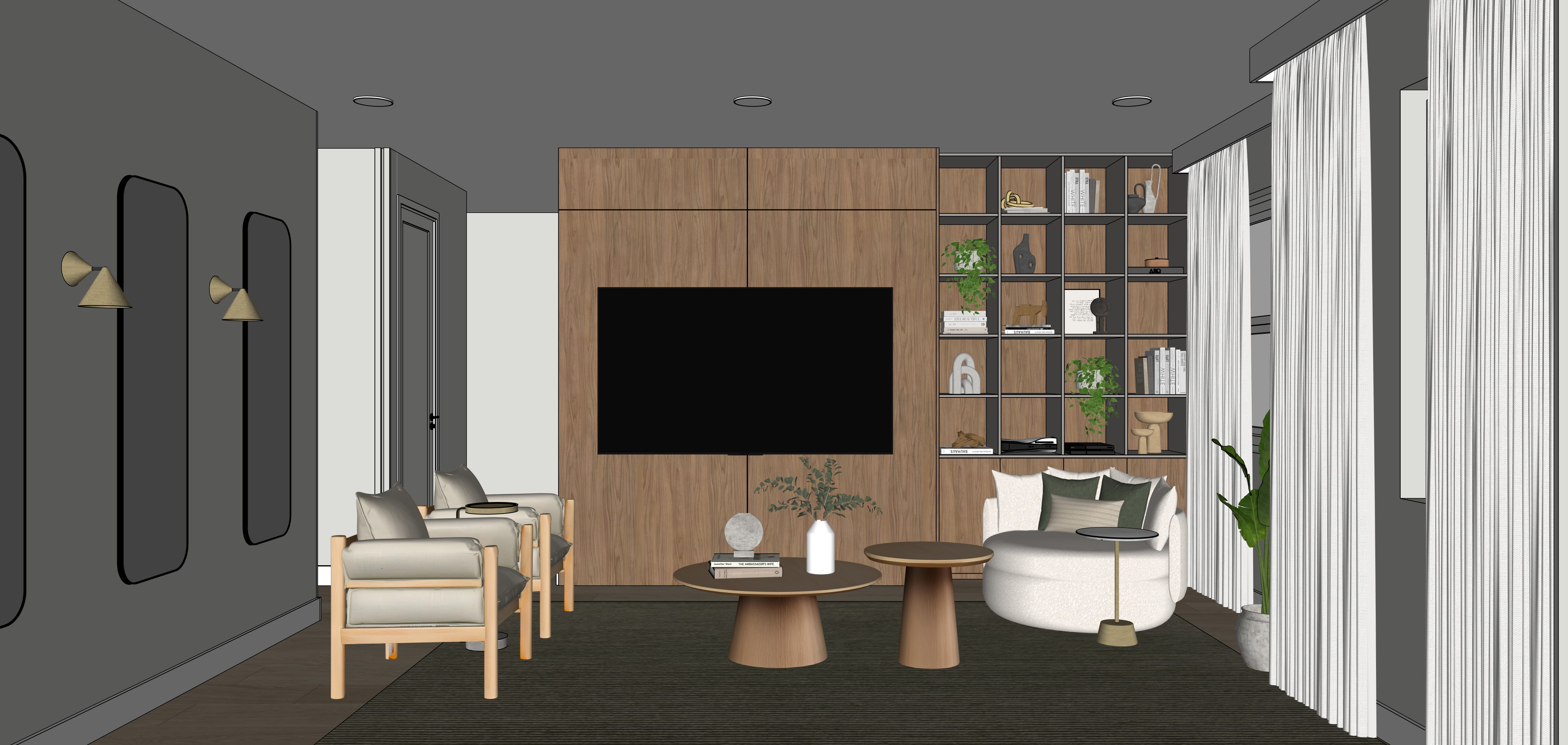 add led lighting in the niches in vertical position add an image to the tv maintain the existing textures and furniture don t change anything just make it photorealistic