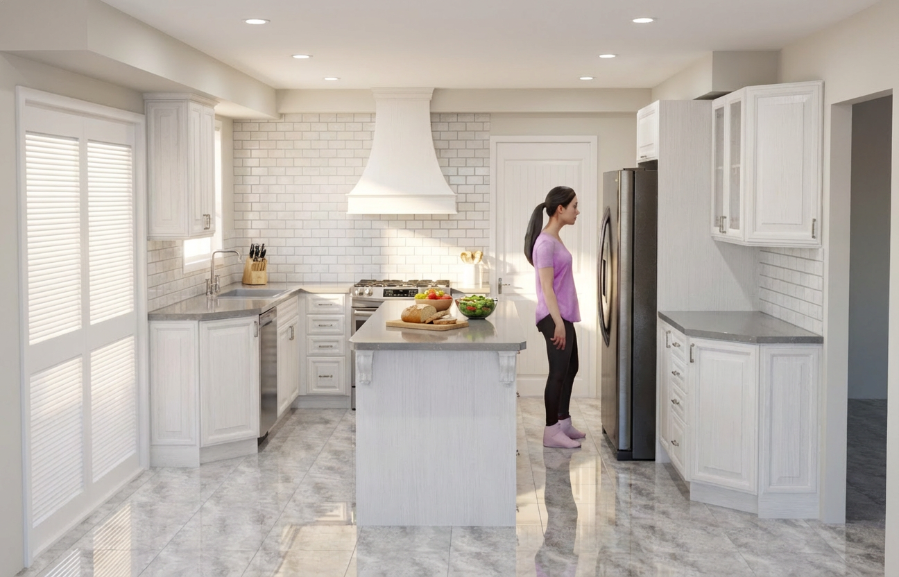 this is a beautiful kitchen with lots of natural light coming in the cabinets are made of a beautiful stained alder and the island cabinets are painted a soft white all the cabinets go to the ceiling with nice modern crown molding the floors are a beautiful light wood counter tops are a nice granite that helps the space feel high end