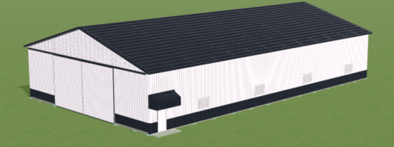 please add this building into an empty iowa farmstead with a sunset in the background keeping all building features in place as drawn