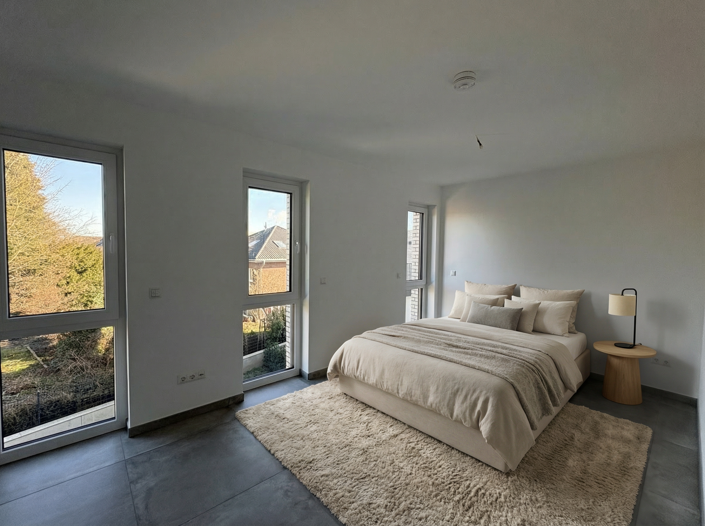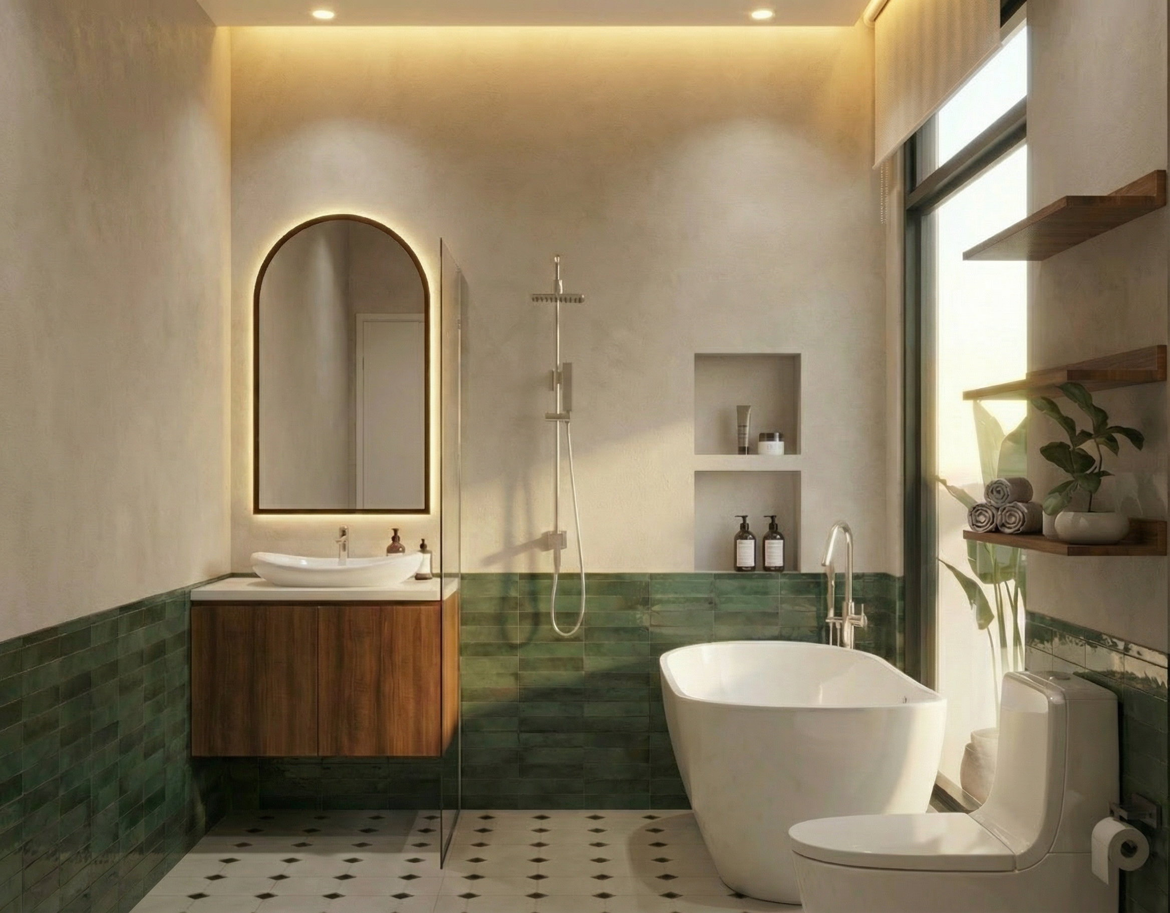 enhance this image to ultra photorealistic quality preserve the exact geometry proportions layout materials colors textures and all design details exactly as shown do not add remove redesign restyle or reinterpret anything do not change materials colors lighting direction furniture dimensions or composition no new objects no decorative additions no artistic reinterpretation only improve realistic lighting natural shadows material realism true to life surface rendering reflections depth and camera realism high end architectural photography quality the final image must be a 1 1 faithful photorealistic version of the original design the floor is mat the mirrors are hanging from the ceiling with steel thin lines