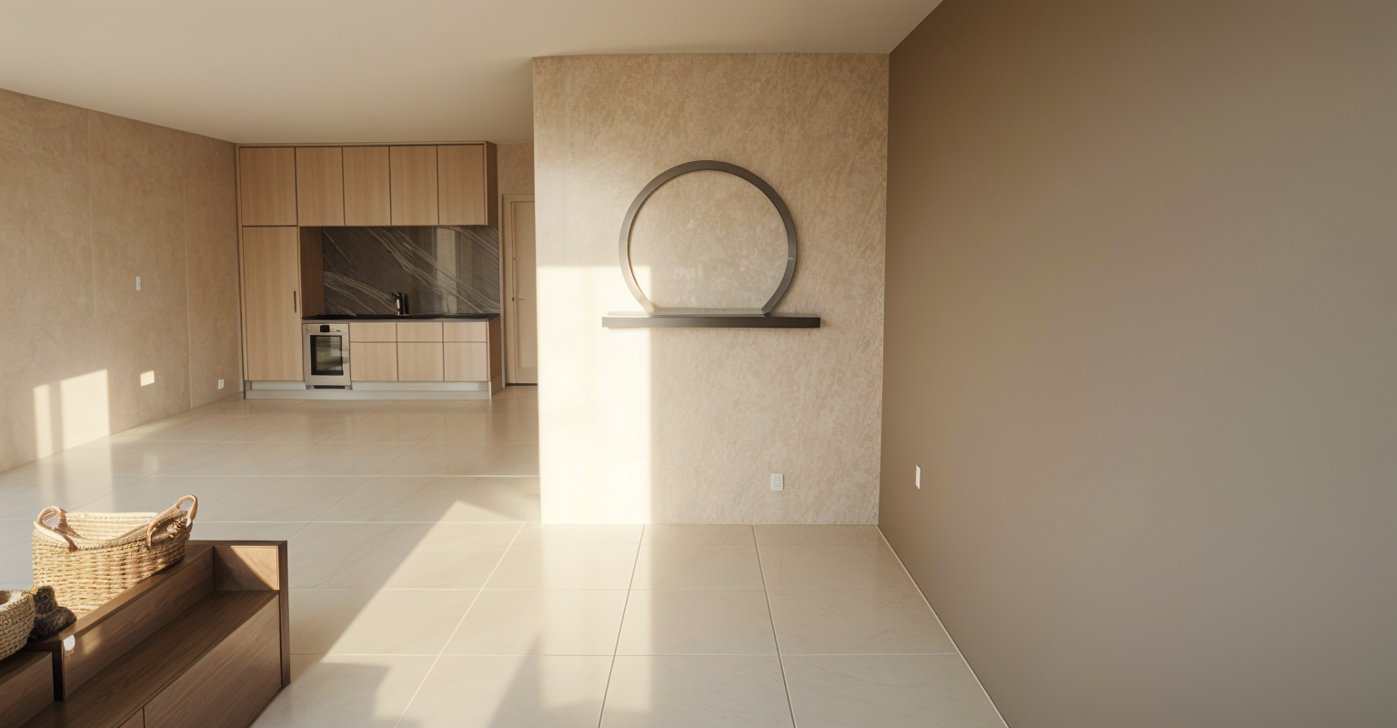 add some lighting elements likes hanging lights or leds around the front wall and change the pantry unit cupboard to dark brown color
