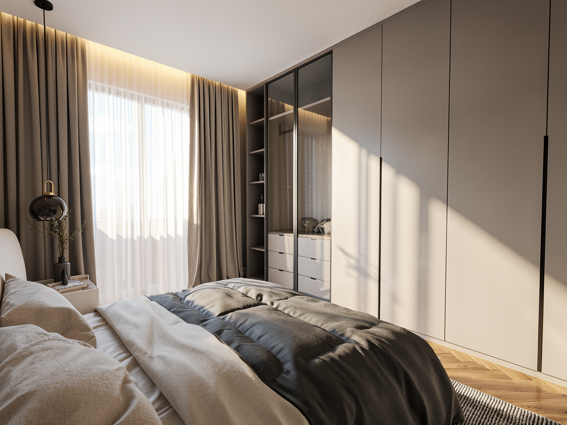 exterior shot change behind the grey car to narrower glazed doors cladding and a window keeping everything else the same as source image