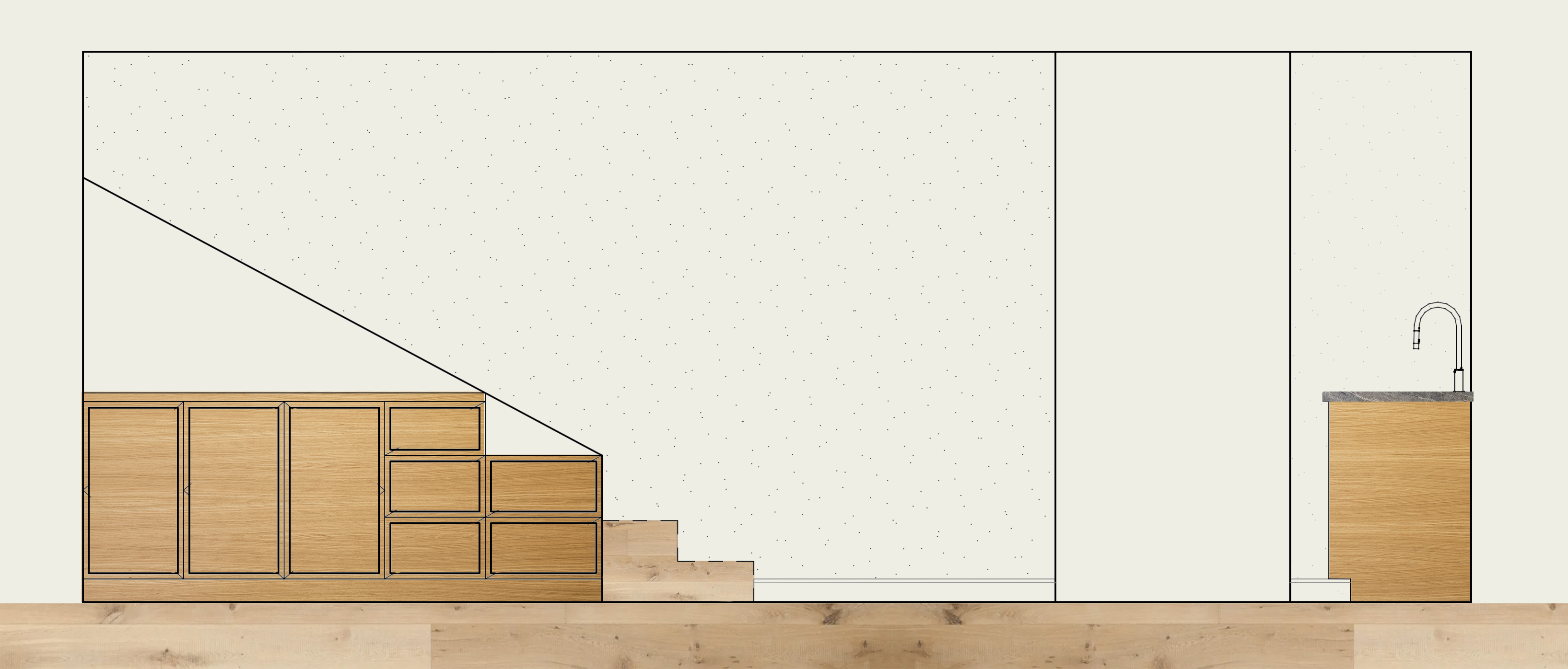 this is an elevation showing cabinetry under the stairs make this look realistic
