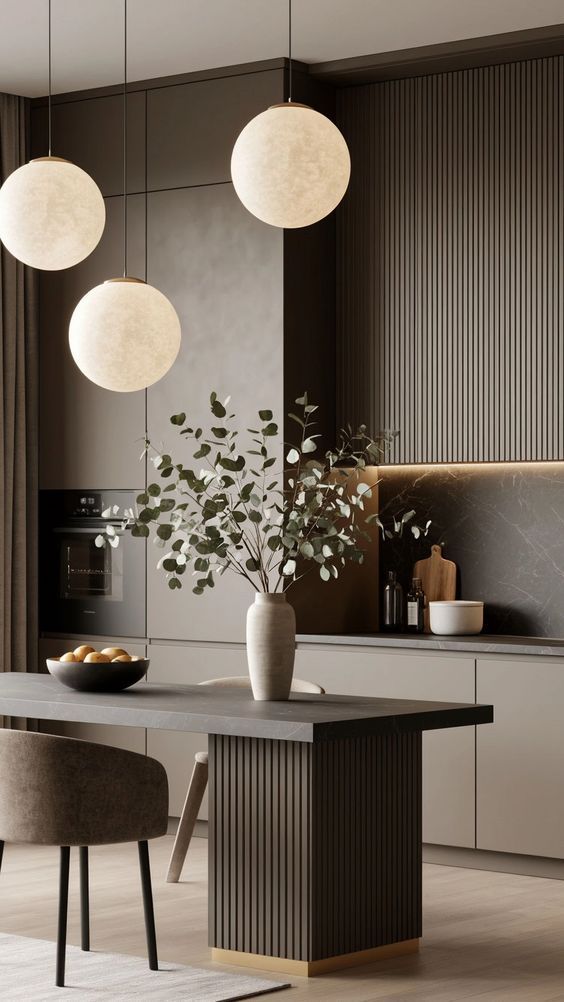 brutalism interior shot kitchen design dark marble and dark wood industrial style architecture